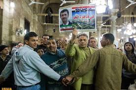 در این بین ناگهان یک پیرمرد مصری جلو می آید و صورت احمدی نژاد را می بوسد و چیزی هم در گوش او می گوید و ما نیز حساس شدیم و گوش تیز کردیم که چه می گوید که رئیس جمهور فقط می خندد!؟