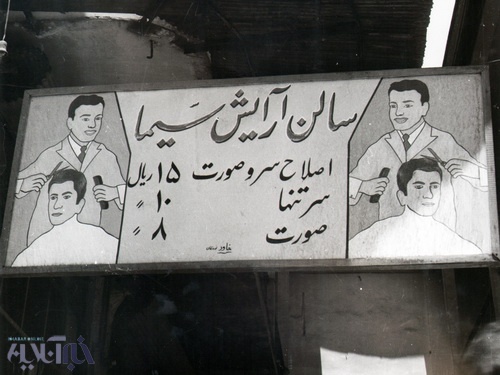 تابلوی آرایشگاه مردانه در خیابان ناصر خسرو تهران/ سال ۱۳۳۵