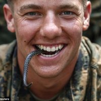 تصاویری شگفت انگیز از تمرین زنده ماندن با خوردن خون مار تا کندن سر مرغ زنده با دهان
