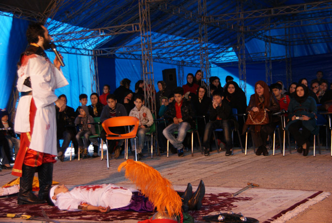 به گزارش پایگاه اطلاع رسانی دیارمیرزا تعزیه حضرت حر و تعزیه خیمه حضرت عباس (ع) درآخرین شب مراسم آیینی و سنتی منطقه آزاد انزلی همزمان با ایام شهادت فاطمه زهرا(س) در نوروزخانه این منطقه اجرا شد.