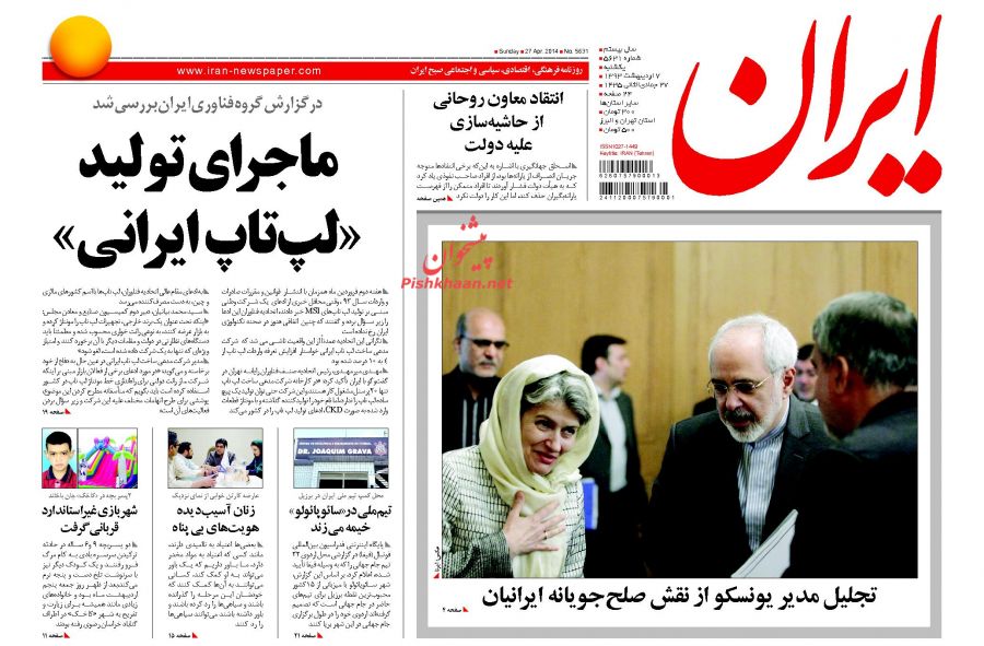صفحه اول روزنامههای یکشنبه ۷ اردیبهشت ۱۳۹۳
