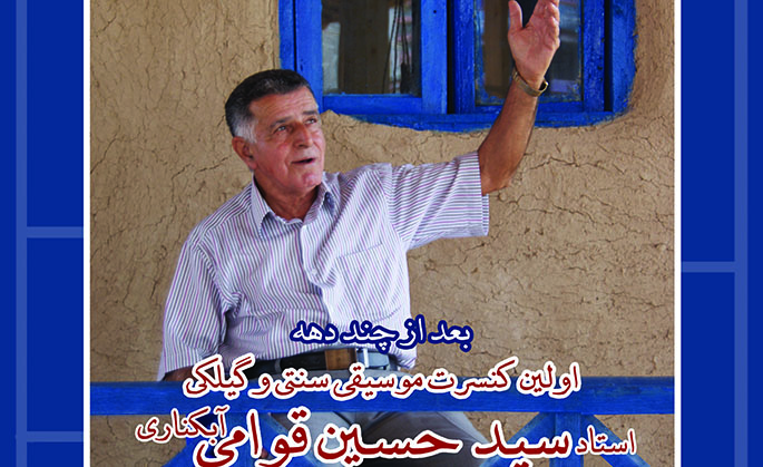به گزارش پایگاه اطلاع رسانی دیارمیرزا ، اولین کنسرت موسیقی سنتی و گیلکی در منطقه آزاد انزلی با صدای ماندگار استاد سید حسین قوامی آبکناری روزهای چهارشنبه و پنج شنبه ۲۲ و ۲۳ مردادماه برگزار خواهد شد.