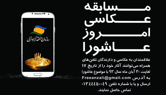به گزارش پایگاه اطلاع رسانی دیارمیرزا ، معاونت فرهنگی اجتماعی گردشگری سازمان منطقه آزاد انزلی، جشنواره عکس«امروز عاشورا» برگزار می کند.