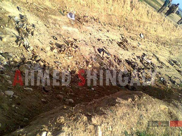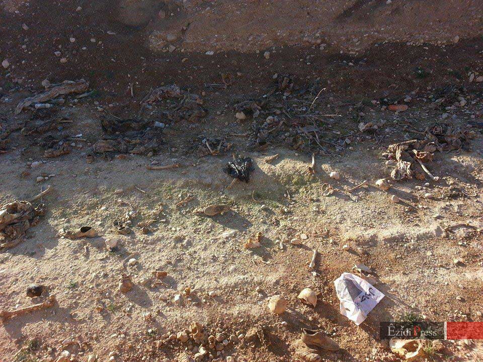 اجساد کشف شده که به ۳۰ تن میرسد متعلق به ایزدی هایی م یباشد که در اطراف سنجار زندگی می کردند . در بین کشته ها اجساد زنان و کودکان نیز دیده میشود .