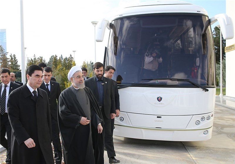 به گزارش پایگاه اطلاع رسانی دیارمیرزا حجتالاسلام حسن روحانی رئیسجمهور در حاشیه نشست مشترک بازرگانان و فعالان اقتصادی ایران و ترکمنستان یک دستگاه اتوبوس VIP عقاب ساخته شده در کشورمان را به عنوان نماد صنعت، یک مجسمه سنگی سر اسب سفید را به عنوان نماد معدن و یک دوره آثار شاعر معروف مختوم قلی را به عنوان نماد پیوند فرهنگی دو ملت به رئیسجمهور ترکمنستان اهدا کرد.