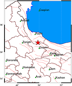 مختصات این زمینلرزه که در عمق ۱۰ کیلومتری زمین رخ داده، ۳۶.۷۰ درجه عرض شمالی و ۴۹.۸۸ درجه طول شرقی ثبت شده است.