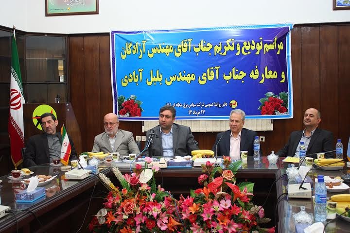 به گزارش پایگاه اطلاع رسانی دیارمیرزا مراسم تودیع و تکریم کریم آزادگان و معارفه عظیم بلبل آبادی با حضور آرش کردی مدیر عامل شرکت توانیر، خصوصی نماینده مردم صومعه سرا در مجلس شورای اسلامی ، احمدی پور معاون سیاسی و امنیتی استاندار گیلان,جمشید طالبی مدیر عامل شرکت توزیع نیروی برق استان گیلان ، پورجمال مدیرعامل نیروگاه شهید بهشتی لوشان،معاونین و مدیران در تاریخ ۲۷/۳/۹۴در سالن کنفرانس شرکت برق گیلان برگزار شد.