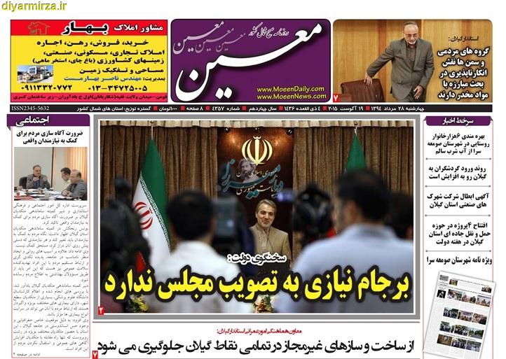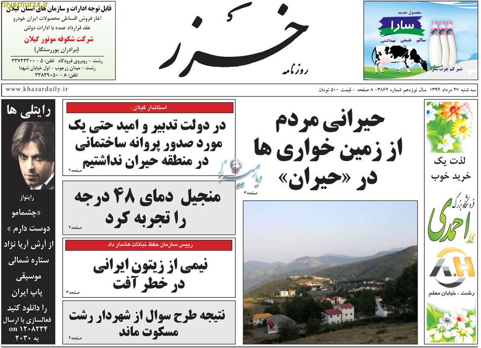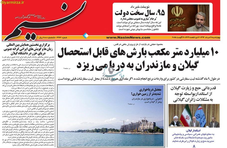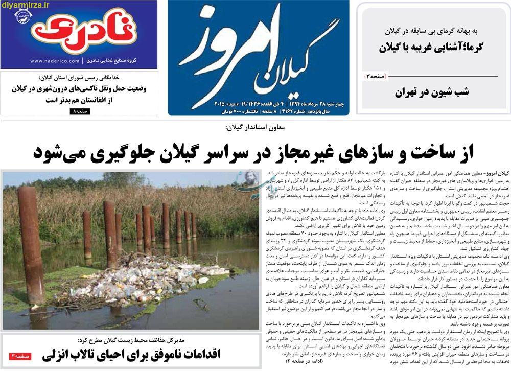 صفحه اول روزنامه های صبح چهار شنبه گیلان