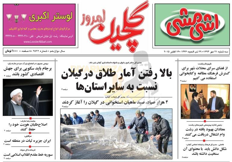 صفحه اول روزنامههای صبح سه شنبه گیلان
