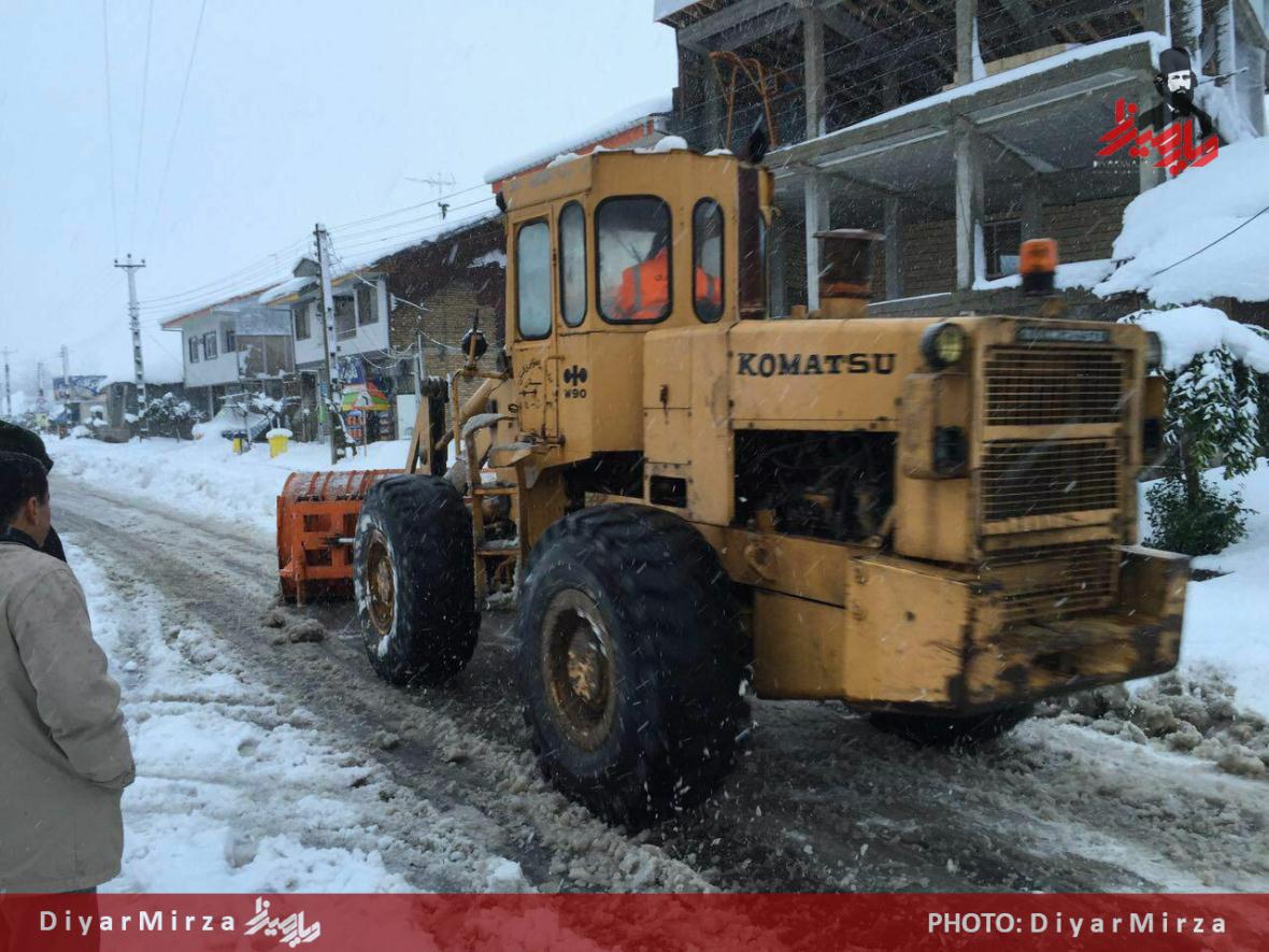 گزارش تصویری بارش برف در گیلان و تلاش عوامل راهداری برای بازگشایی محورها