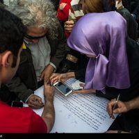 معصومه مظفری – رئیس انجمن هنرمندان نقاش – نیز در این تجمع، نامه سرگشادهای را که توسط انجمن هنرمندان سفالگر، مهندسان شهرساز، تصویرگران و انجمن علمی نقاشی دانشگاه هنر خطاب به وزیر فرهنگ و ارشاد اسلامی نوشته شده بود، برای حاضران خواند.