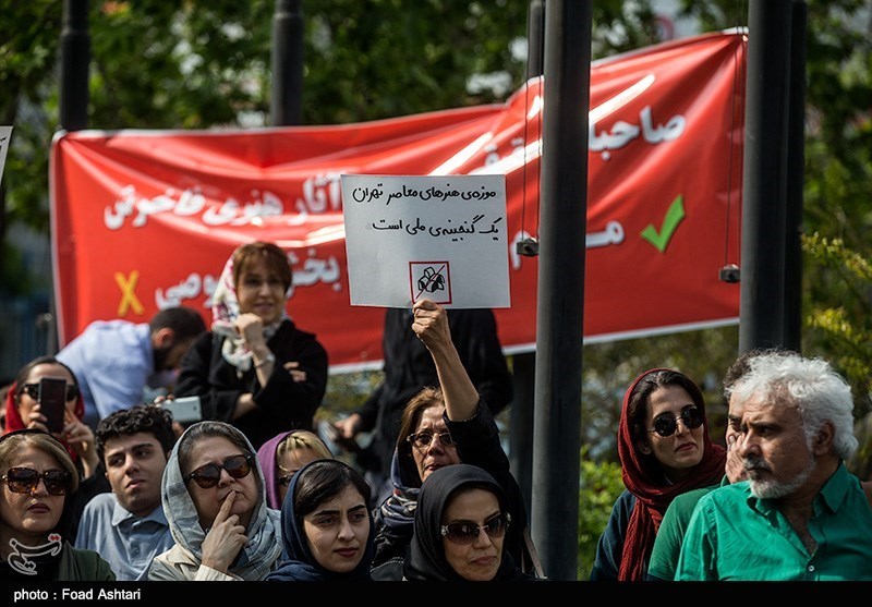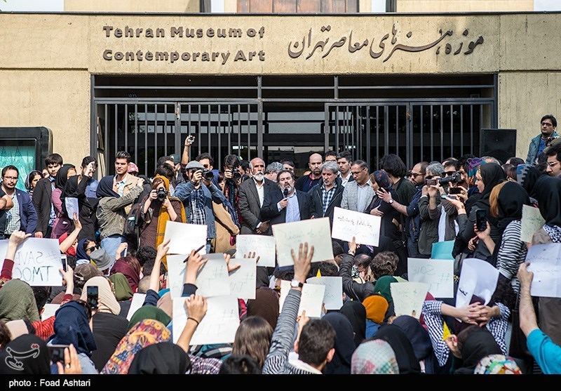 تجمع گسترده اهالی هنر مقابل موزه هنرهای معاصر+تصاویر و شعارها
