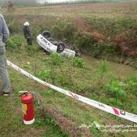 واژگونی خودروی پراید با ۴ سرنشین به داخل کانال آب به خیر گذشت +تصاویر