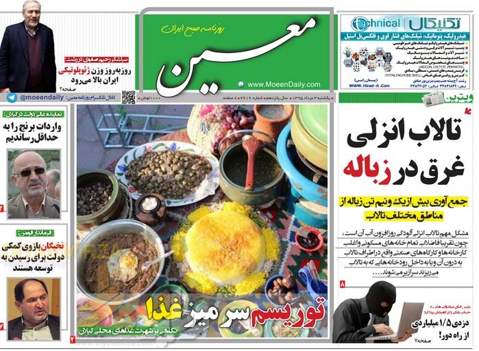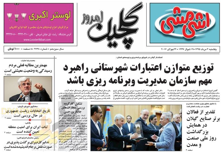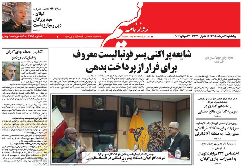 صفحه اول روزنامه های گیلان یکشنبه ۳ مرداد