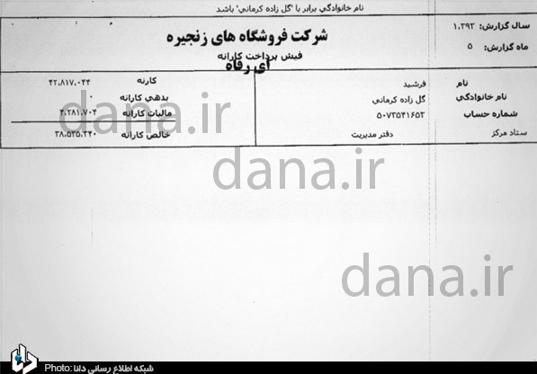 فیش نجومی مدیرعامل فروشگاه رفاه+ اسناد