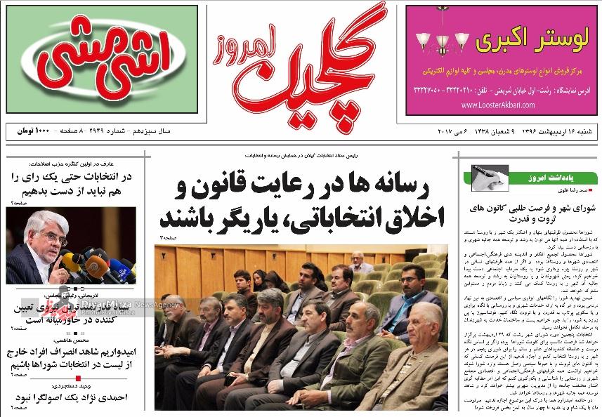 صفحه اول روزنامه‌های گیلان ‌شنبه ۱۶ اردیبهشت