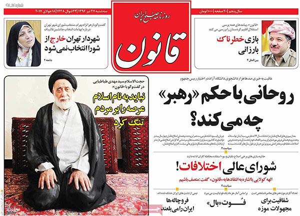 صفحه اول روزنامههای سهشنبه ۲۷ تیر