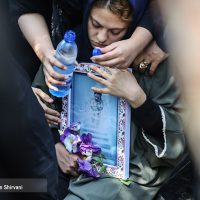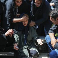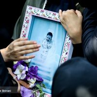 مردم و تعدادی از هنرمندان در این مراسم حضور دارند تا دختر ۸ ماهه را تا خانه ابدی تشییع و به خاک بسپارند.