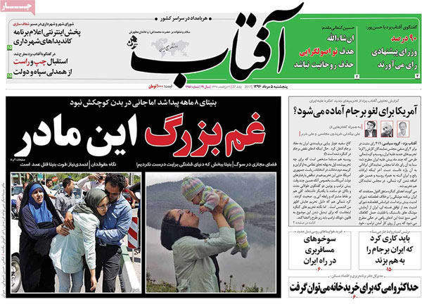 صفحه اول روزنامههای پنجشنبه ۵ مرداد
