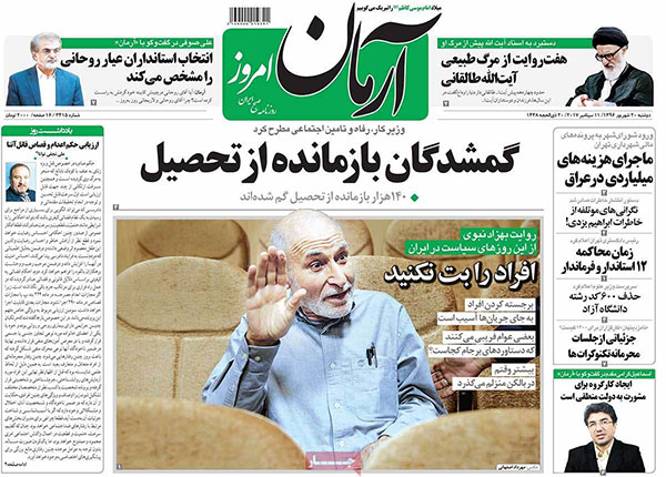 صفحه اول روزنامههای دوشنبه ۲۰ شهریور