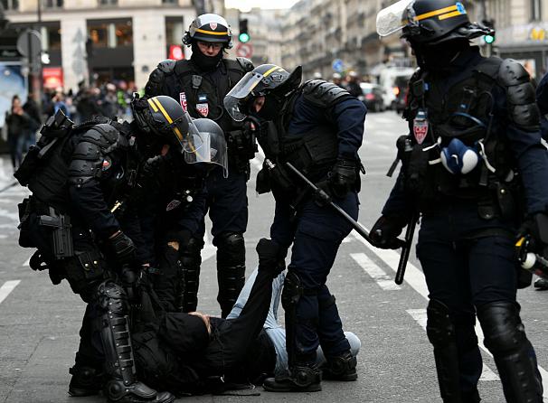 پس از بروز خشونت از سوی تظاهرکنندگانی که در فرانسه به خرابکاران (casseurs) مشهورند، پلیس ضد شورش فرانسه با شدت کمسابقه تظاهرات جلیقه زردها را سرکوب کرد. این روند پس از اعتراضهای دانشآموزان دبیرستانهای حومه شهرهای بزرگ هم ادامه یافت. انتشار تصاویر دانشآموزان یکی از حومههای پاریس در حالت «بازداشت جنگی» هم افکار عمومی را نسبت به خشونت پلیس به شدت جریحه دار کرد.