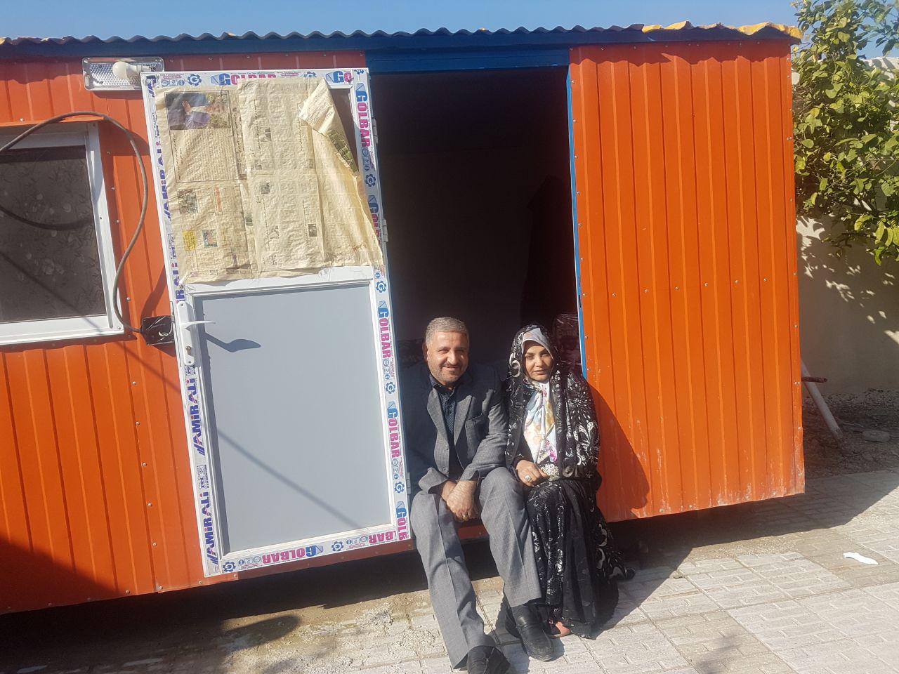 فرهاد تجری نماینده قصرشیرین که منزل مسکونی اش در زلزله سال گذشته کرمانشاه، خسارت دیده در چادر و کانکس زندگی می کند.