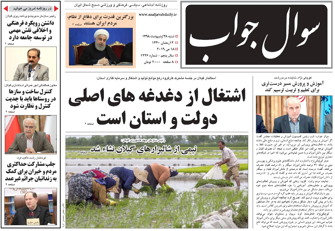 صفحه اول روزنامه‌های گیلان شنبه ۲۸ اردیبهشت