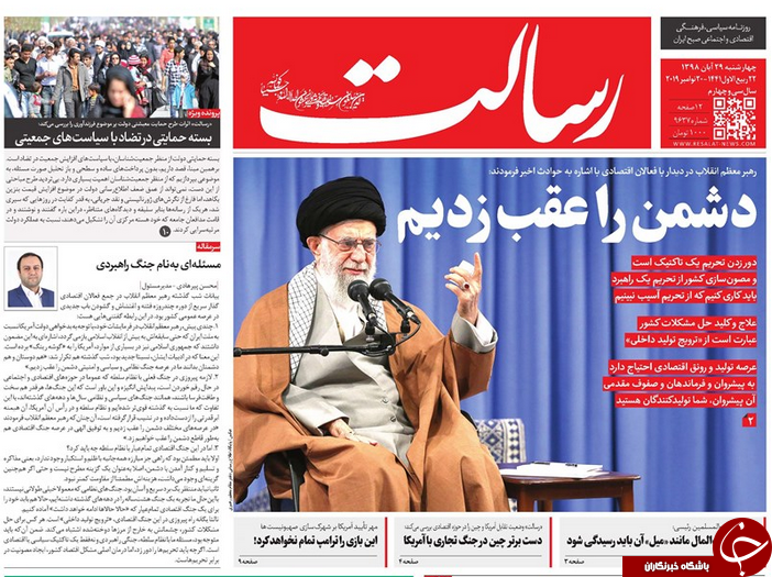 صفحه نخست روزنامههای ایران ۲۹ آبان ۹۸