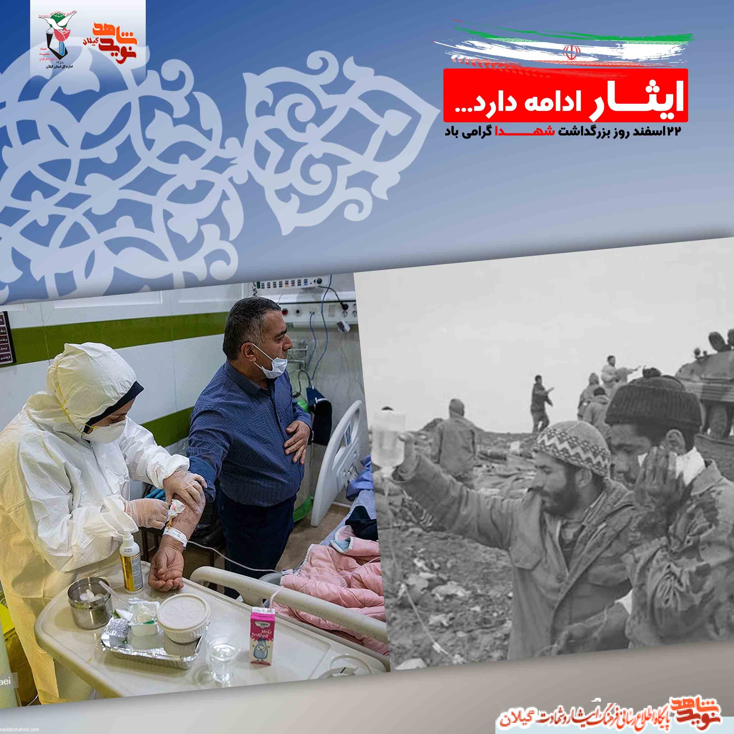 سنگر همان سنگر است مردم همان مردم، ایثار و فداکاری از دیروز تا امروز ادامه دارد، در آستانه ۲۲ اسفند روز بزرگداشت شهدا مجموعه تصاویر «ایثار ادامه دارد» توسط پایگاه اطلاع رسانی نویدشاهدگیلان منتشر شد.