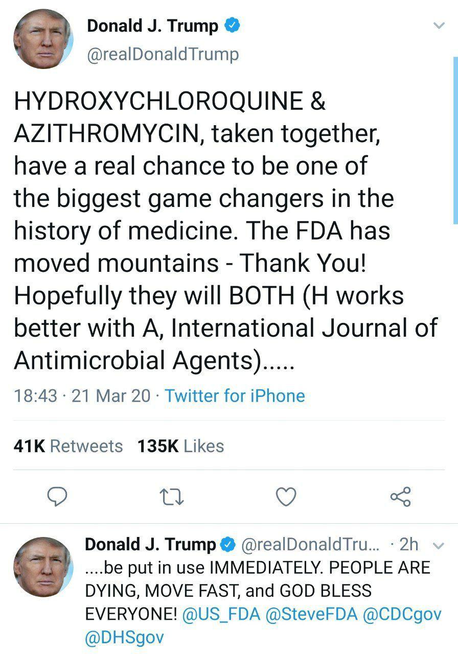 هیدروکسی کلروکین (HYDROXYCHLOROQUINE) و آزیترومایسین (AZITHROMYCIN)، به همراه یکدیگر، شانس واقعی دارند تا به یکی از موثرترین داروها در تاریخ این رشته تبدیل شوند.