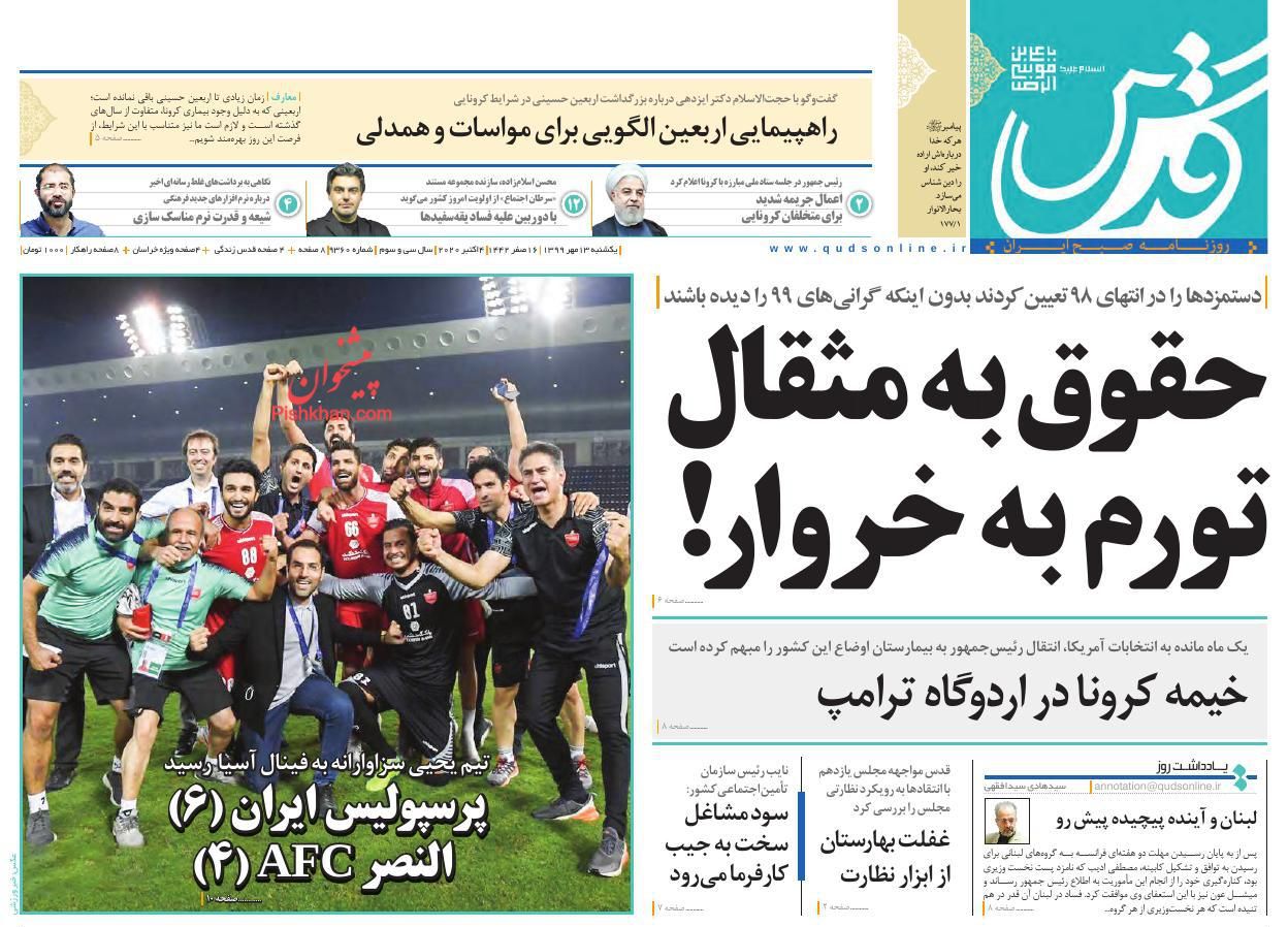 صفحه اول روزنامههای یکشنبه ۱۳ مهر ۱۳۹۹