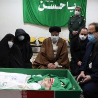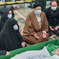 تصاویری از وداع آیت الله رئیسی با پیکر شهید فخری زاده