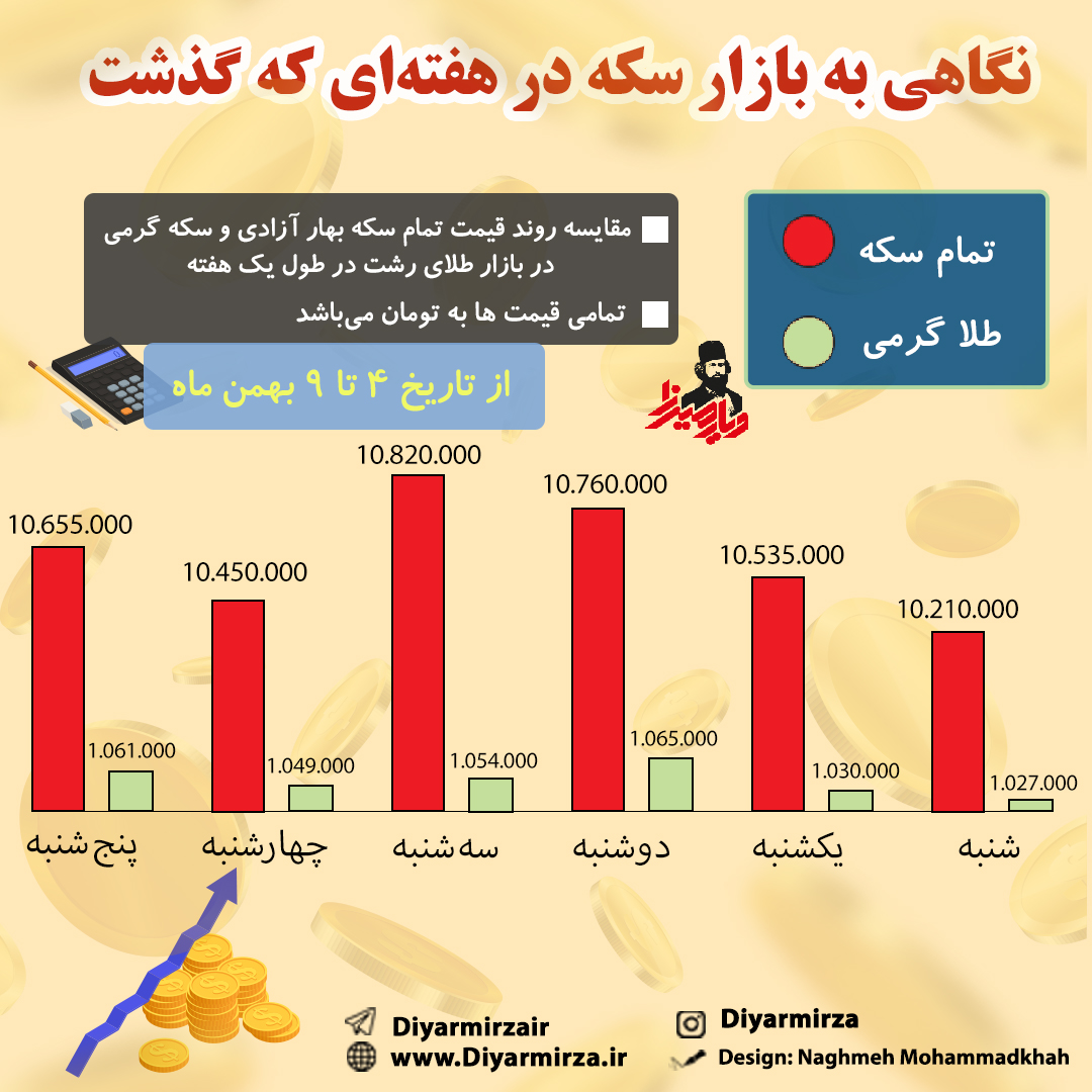 اینفوگرافیک: نگاهی به بازار طلا و سکه در هفته ای که گذشت