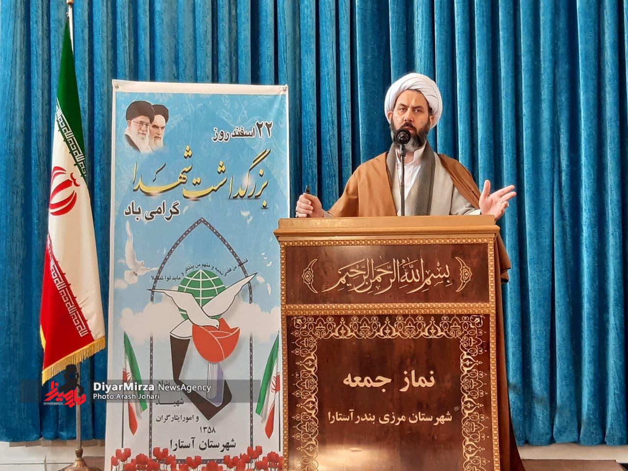 امام جمعه آستارا در ابتدای خطبه دوم نماز جمعه این هفته شهرستان با اشاره به جمعه ۲۲ اسفند سالروز تاسیس بنیاد شهید و امور ایثارگران انقلاب اسلامی به دستور امام خمینی (ره) و روز شهدا گفت: این نهاد برای تکریم خانواده های معظم شهدا، ایثارگران و آزادگان و زنده نگه داشتن یاد و نام شهدا بنا شد و توفیق خدمت به خانواده شهدا را خداوند نصیب هر شخصی نکرده و باید قدر آن را دانست و ما هر چقدر کار هم کنیم باید بگوئیم شهدا شرمنده ایم!