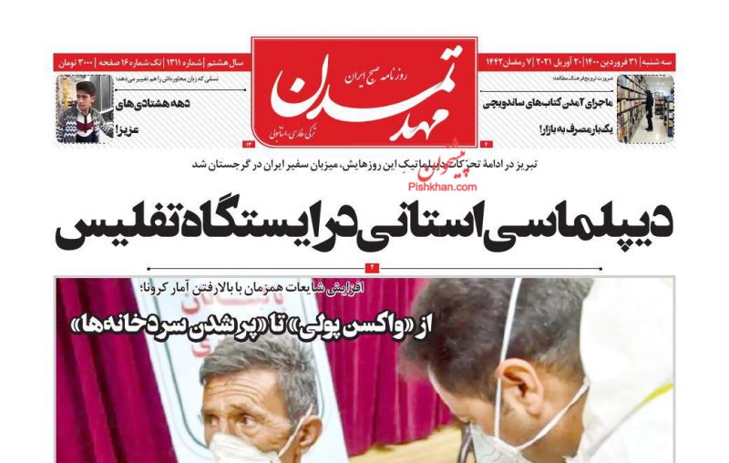 صفحه اول روزنامههای سهشنبه ۳۱ فروردین ۱۴۰۰