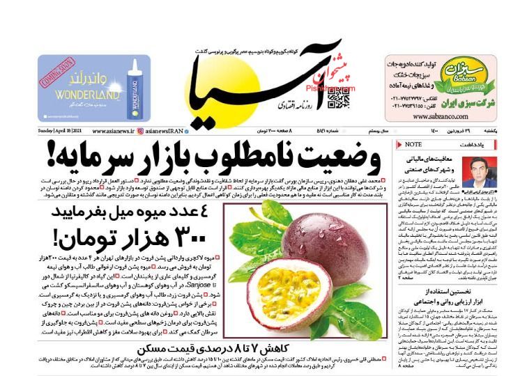 صفحه اول روزنامه های یکشنبه ۲۹ فروردین ۱۴۰۰