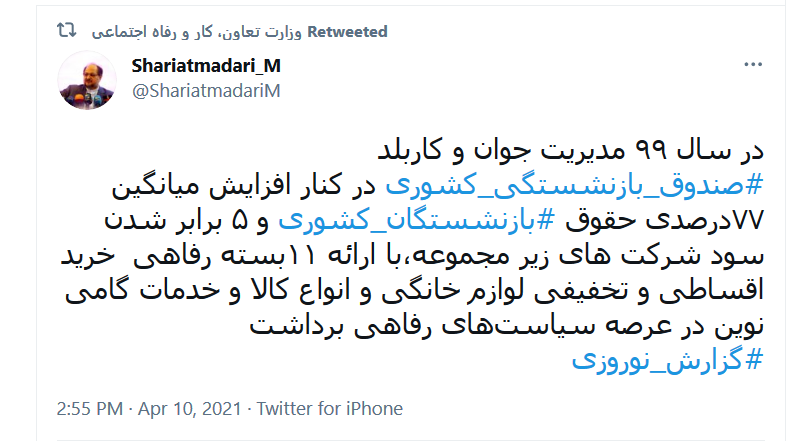 وزیر تعاون، کار و رفاه اجتماعی گفت: صندوق بازنشستگی فولاد در سال ۹۹ کارهای بزرگی را به سرانجام رساند.
