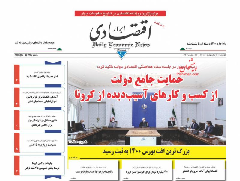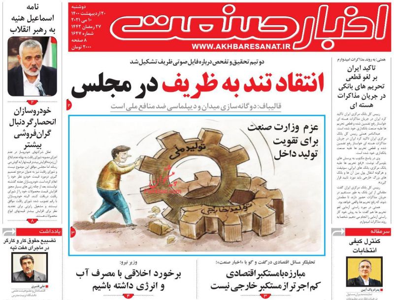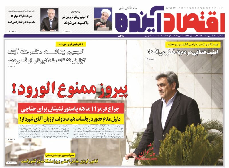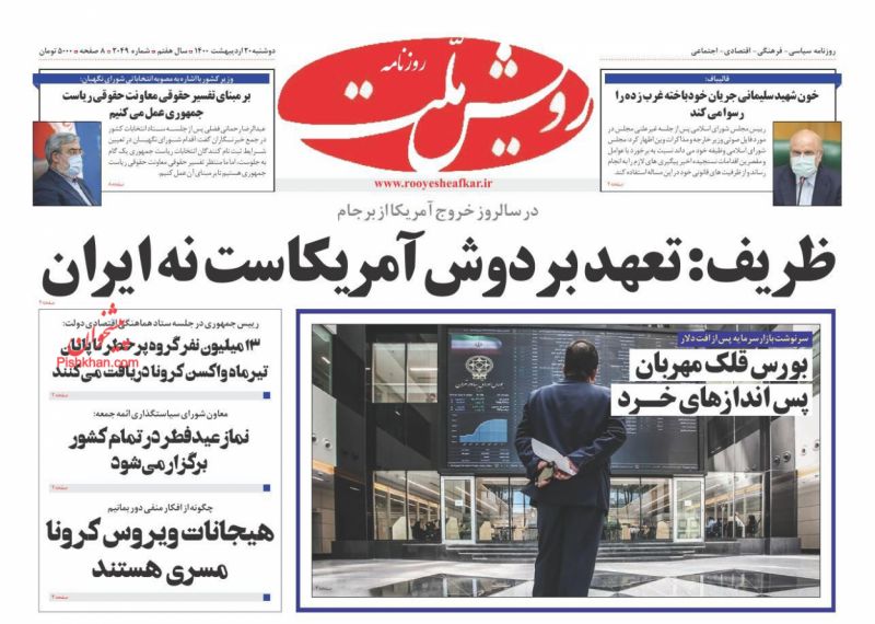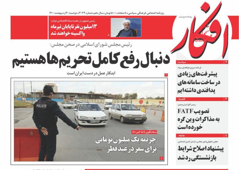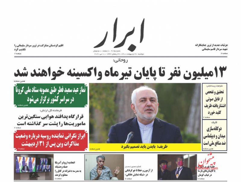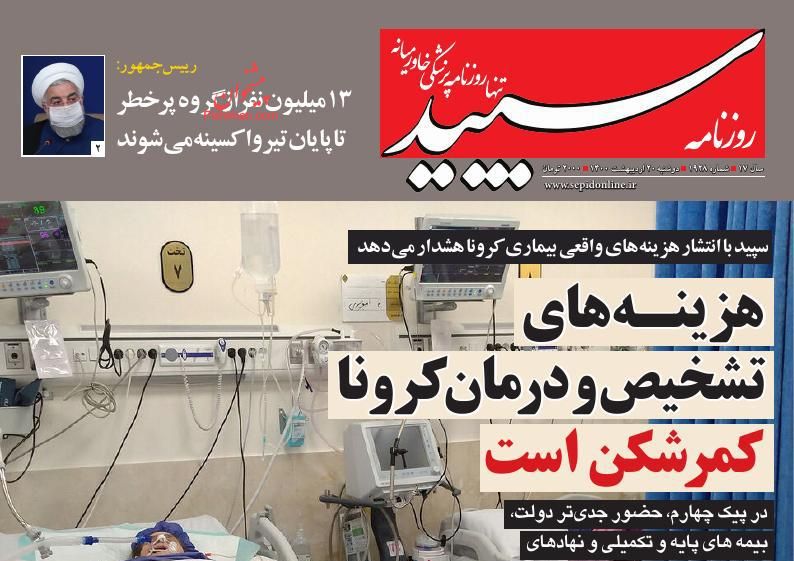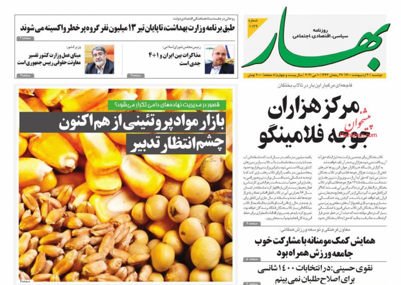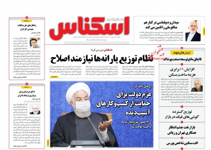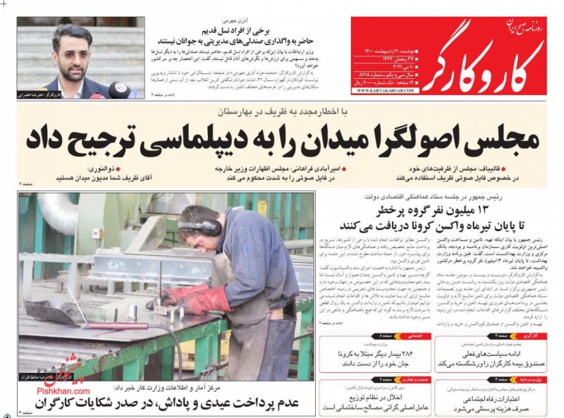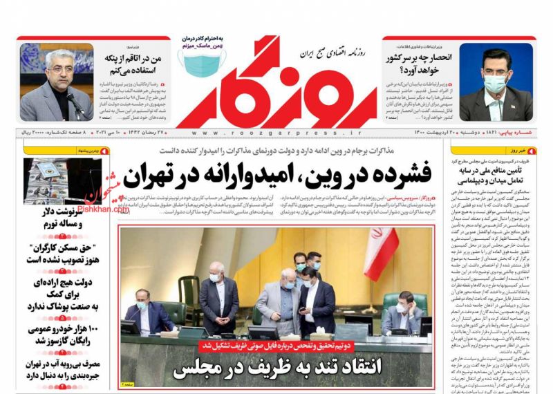 صفحه اول روزنامههای دوشنبه ۲۰ اردیبهشت ۱۴۰۰