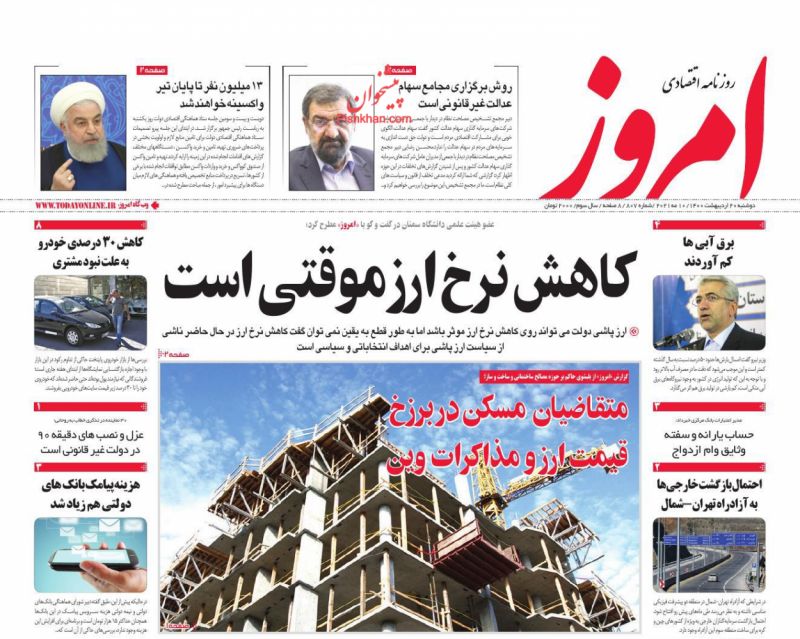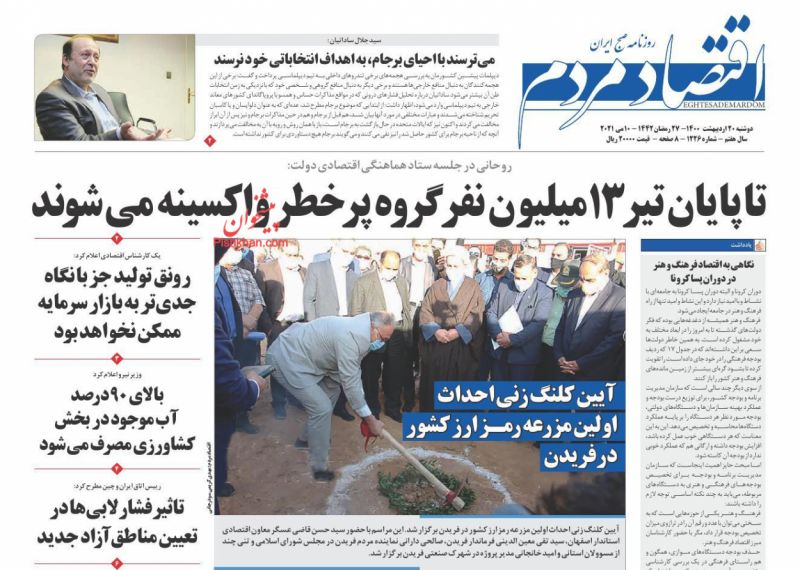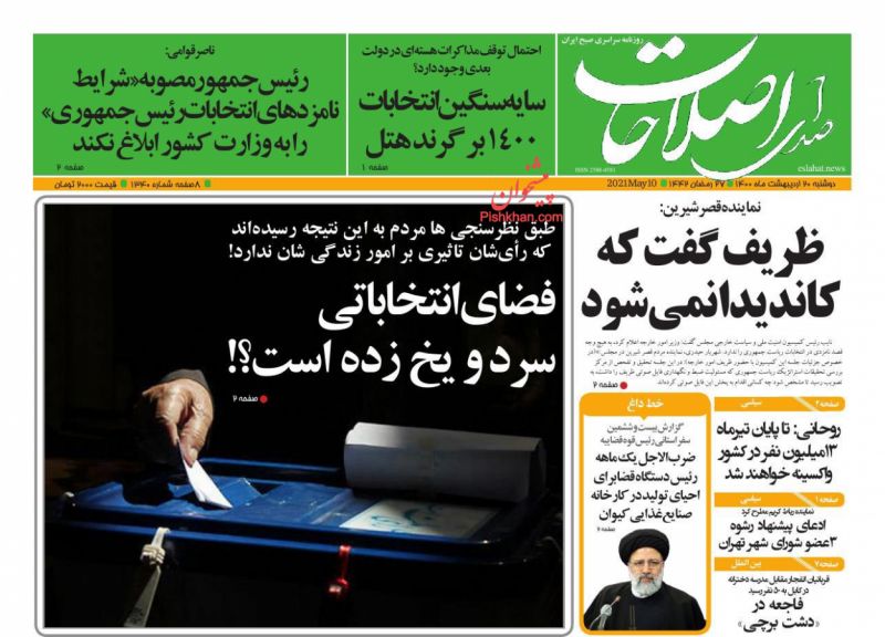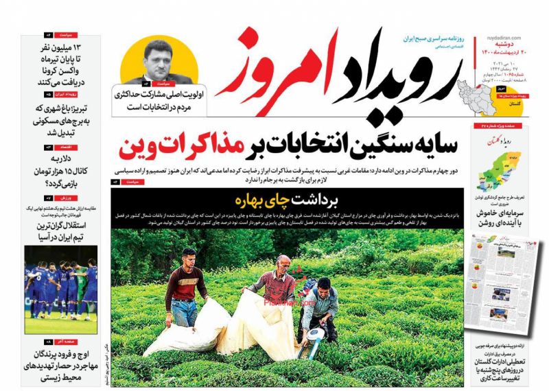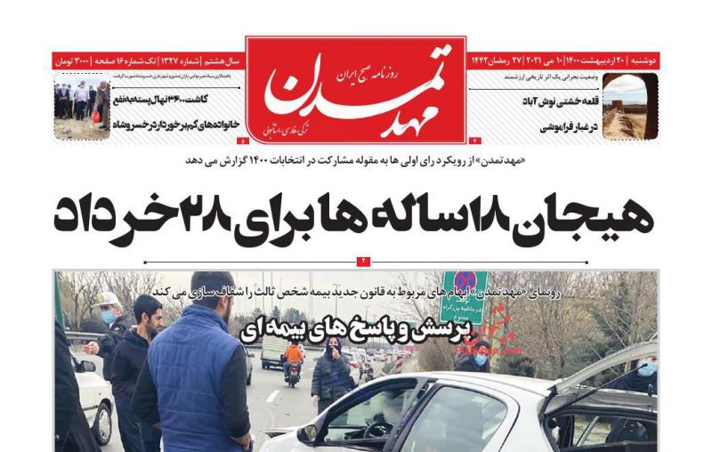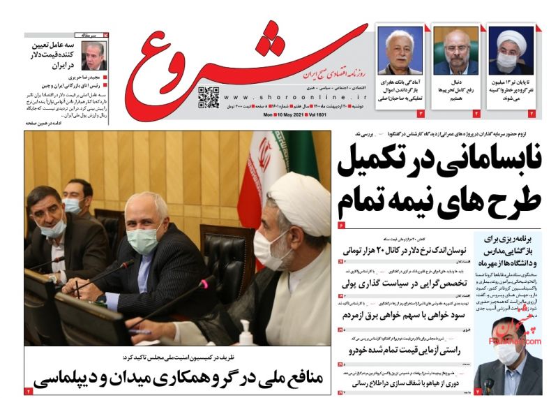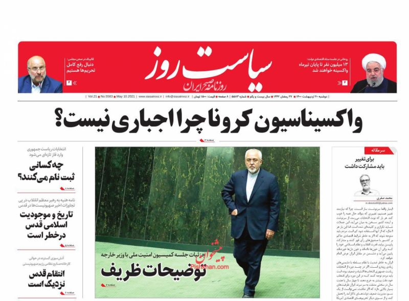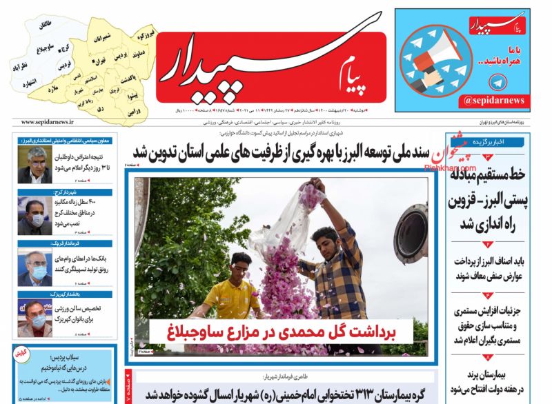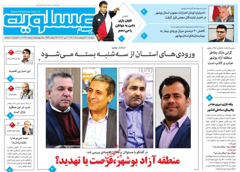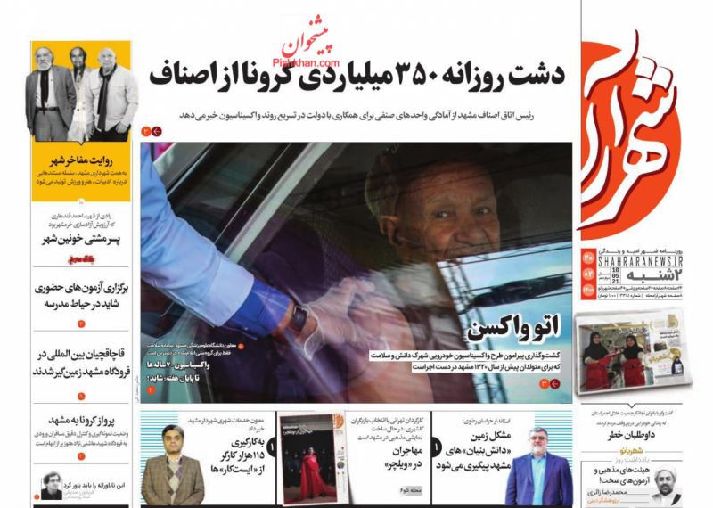 صفحه اول روزنامههای دوشنبه ۲۰ اردیبهشت ۱۴۰۰