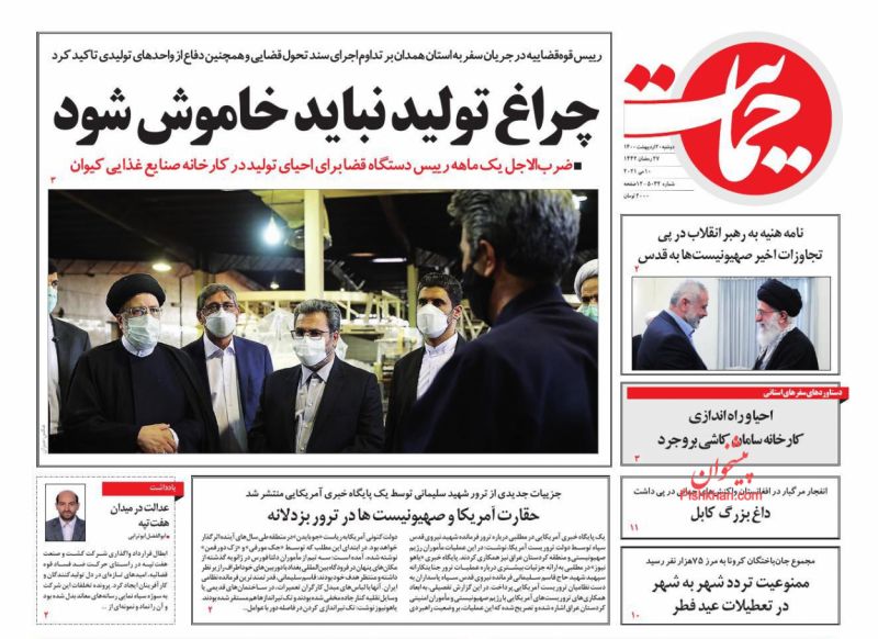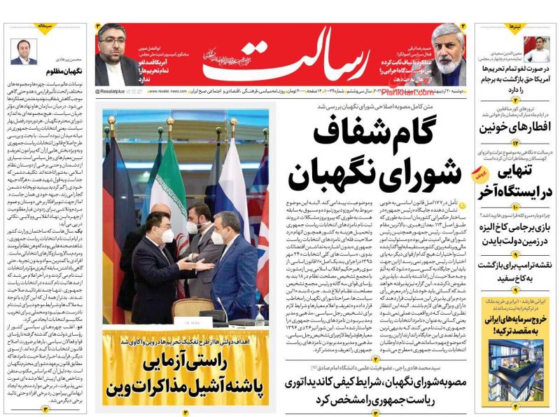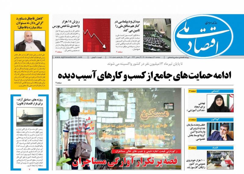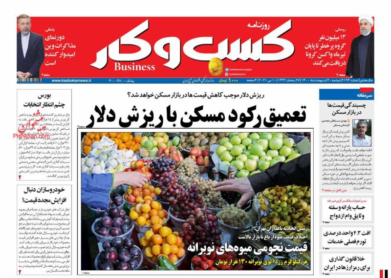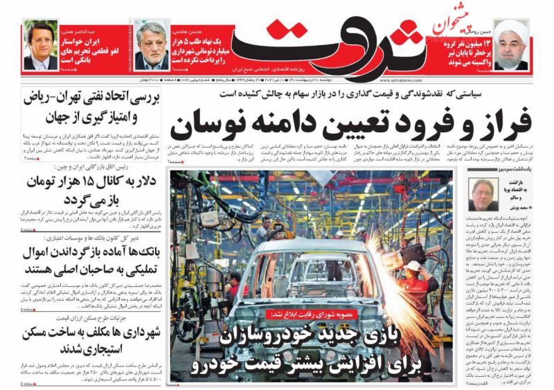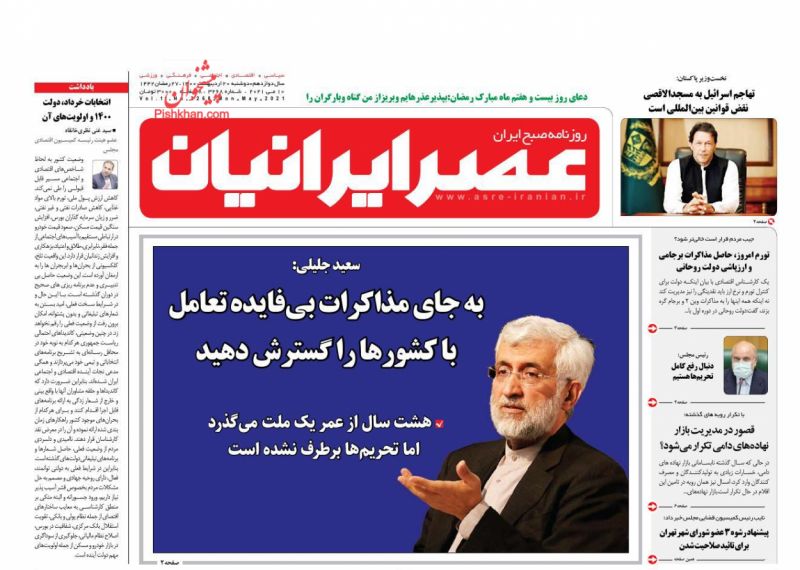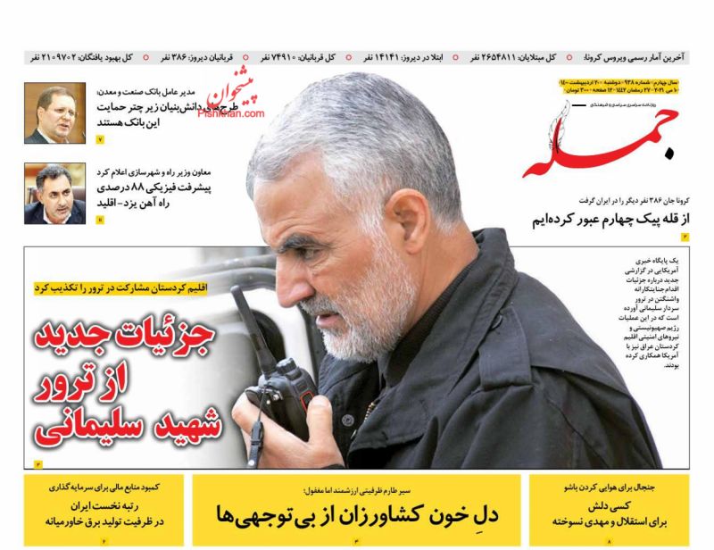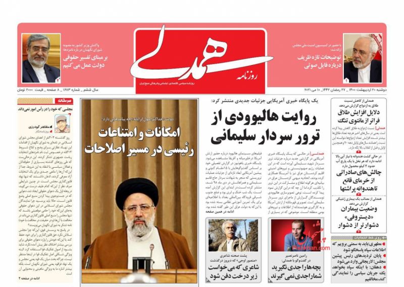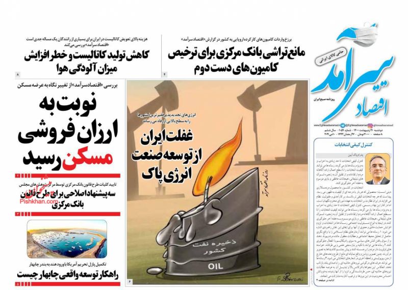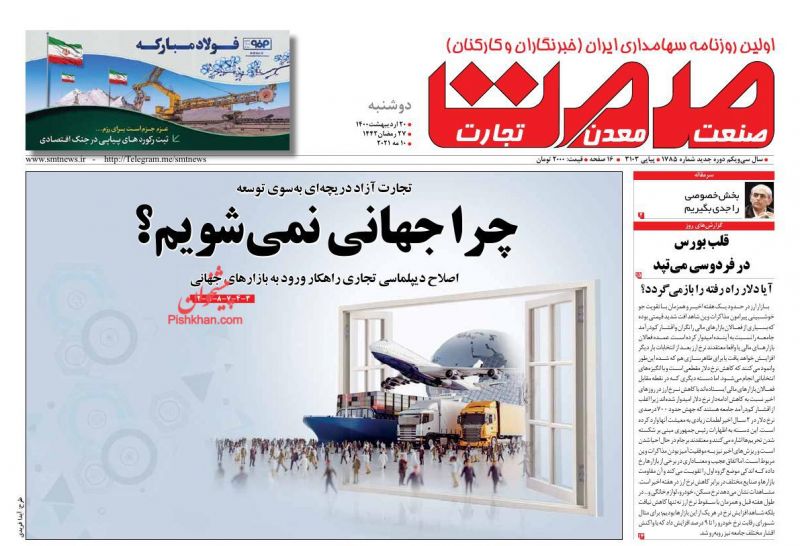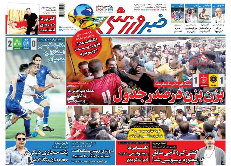 صفحه اول روزنامههای دوشنبه ۲۰ اردیبهشت ۱۴۰۰