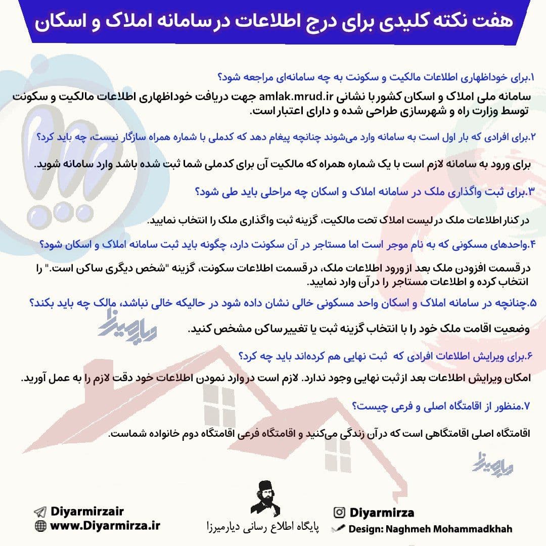 اینفوگرافیک: نکات کلیدی برای درج اطلاعات در سامانه املاک و اسکان