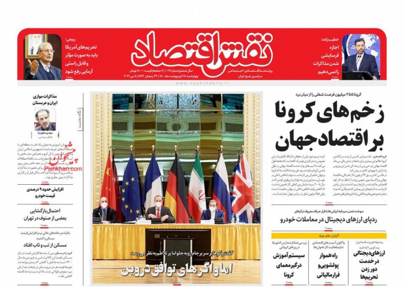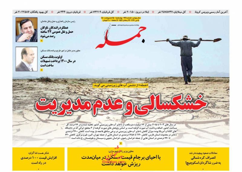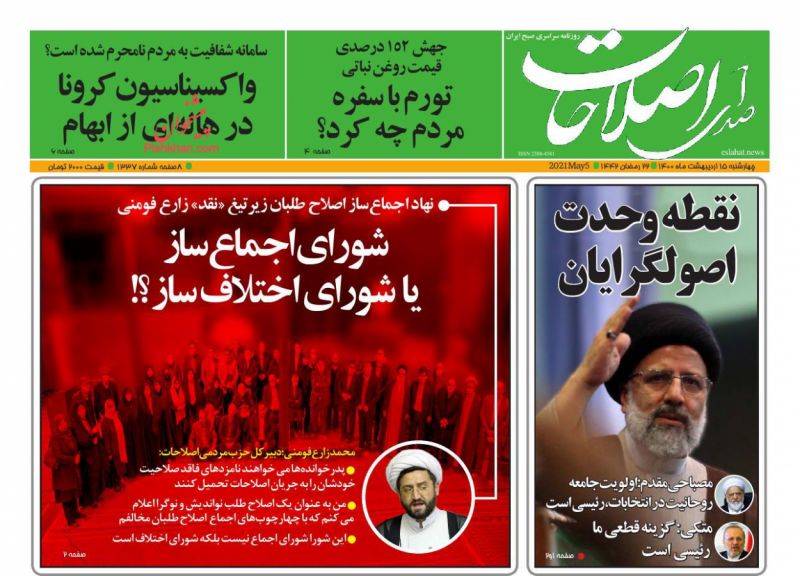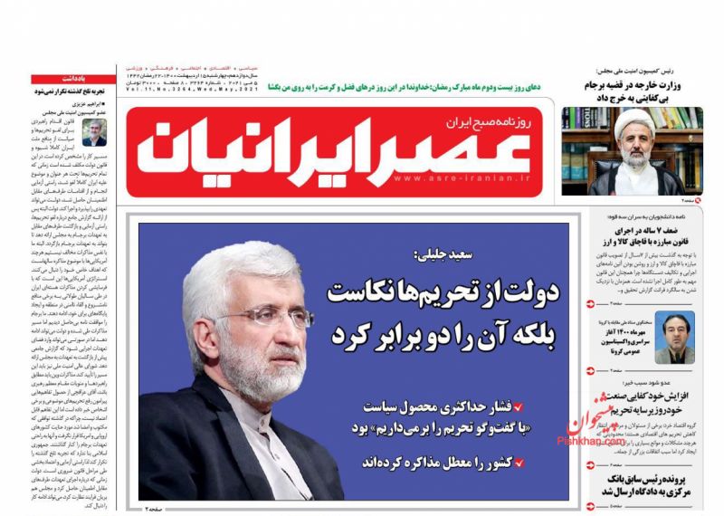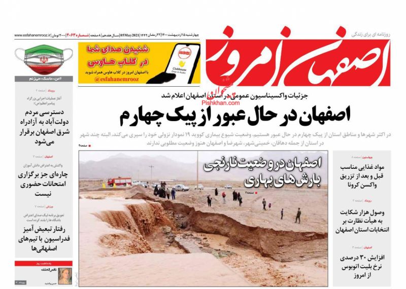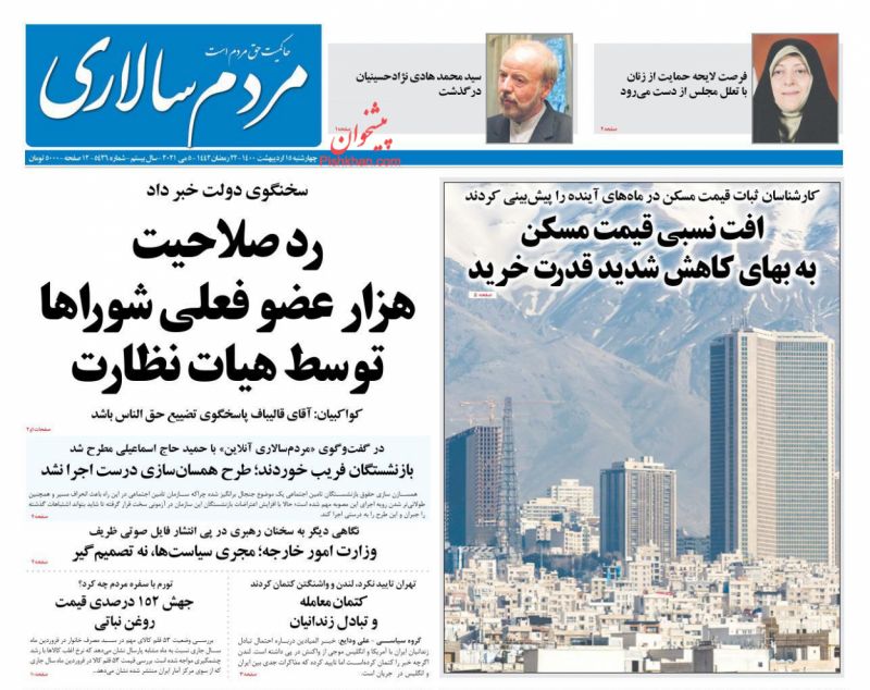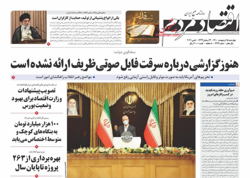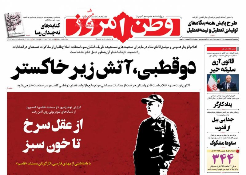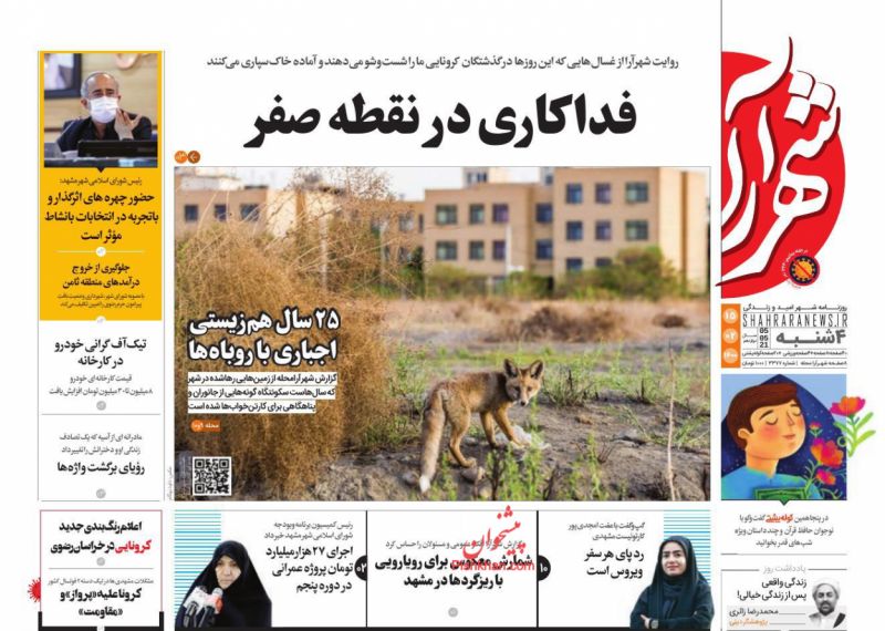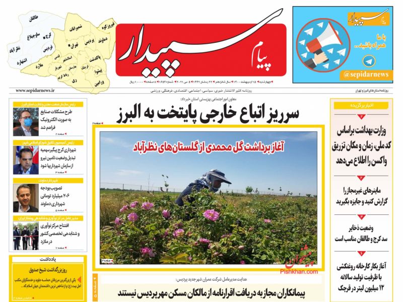صفحه اول روزنامههای چهارشنبه ۱۵ اردیبهشت ۱۴۰۰