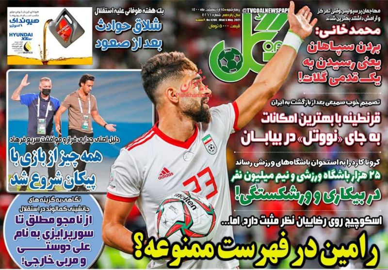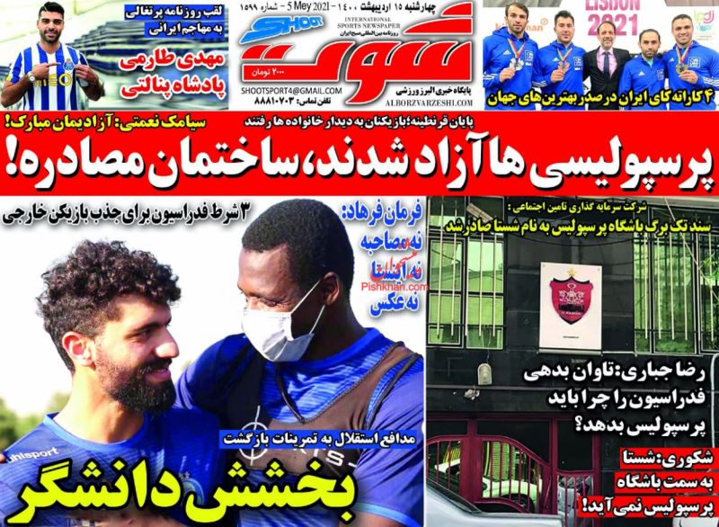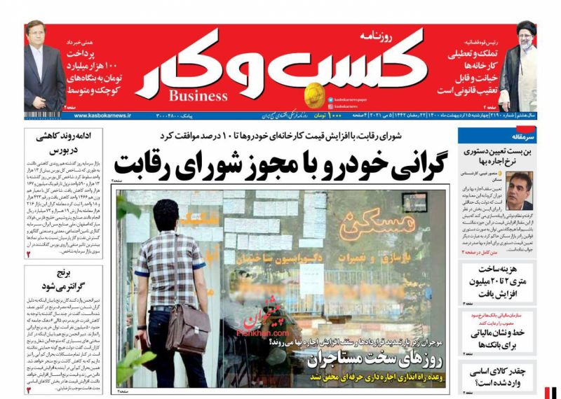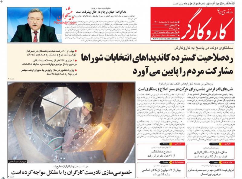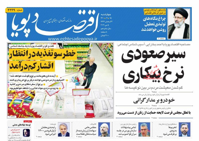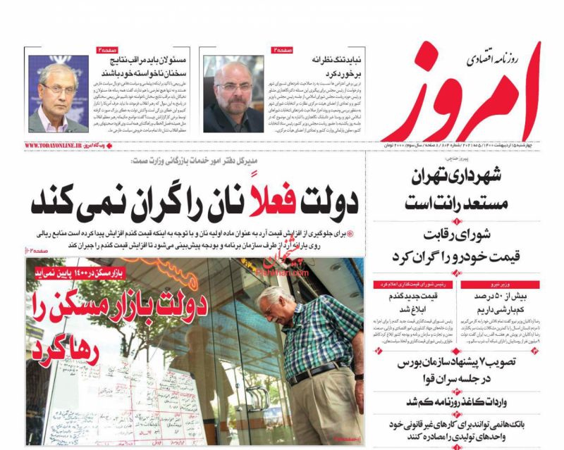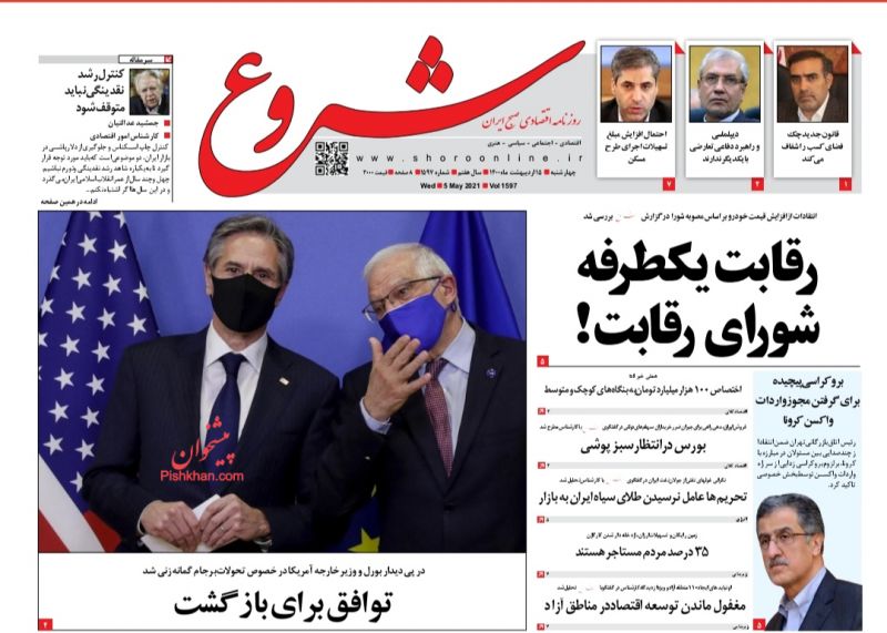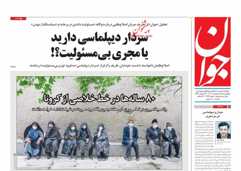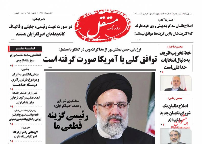 صفحه اول روزنامههای چهارشنبه ۱۵ اردیبهشت ۱۴۰۰
