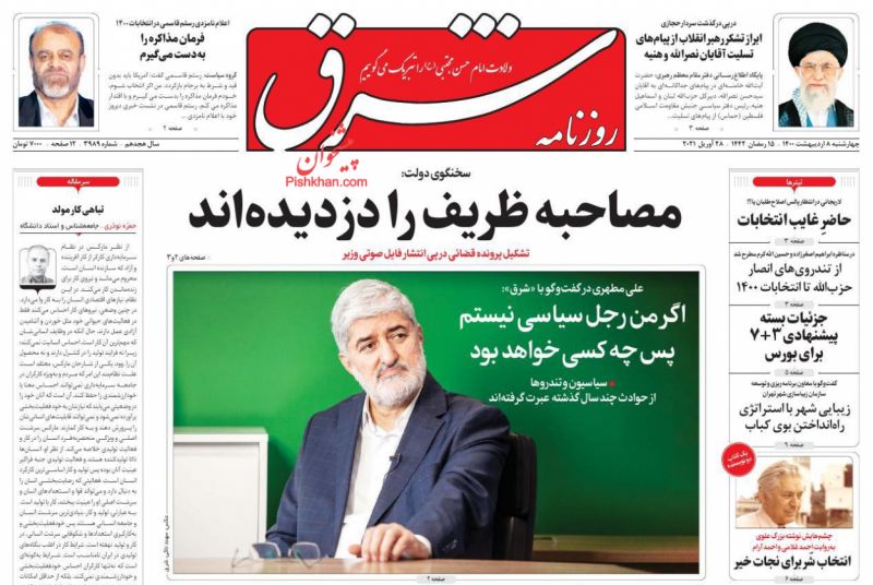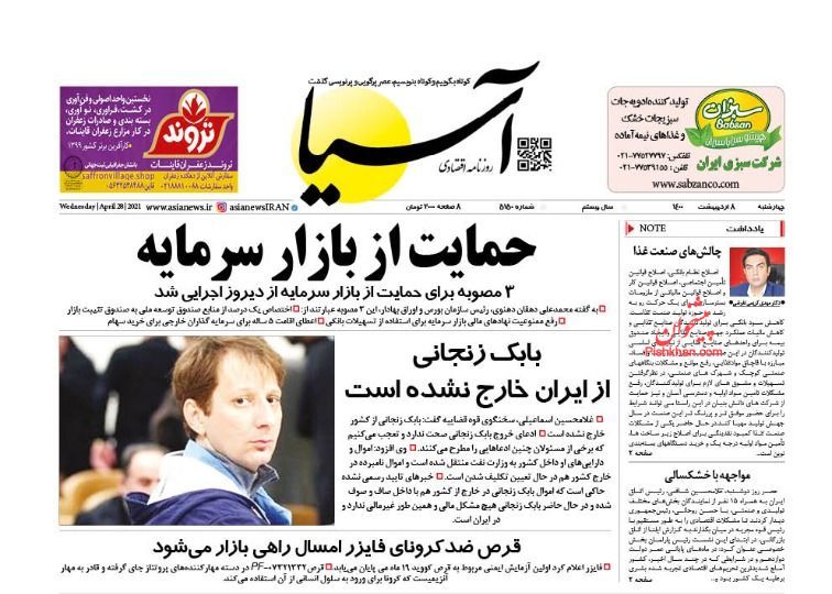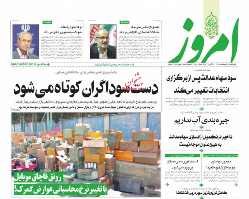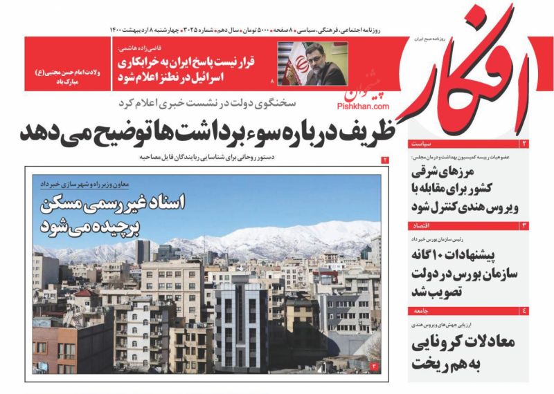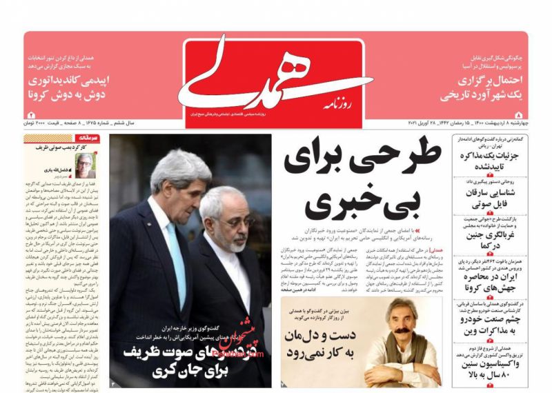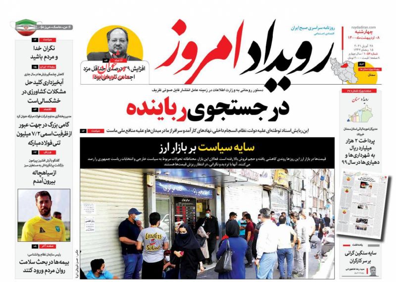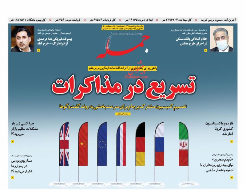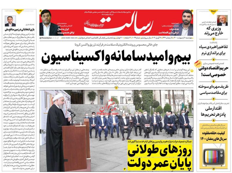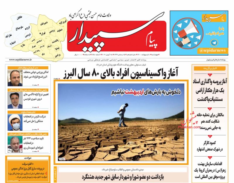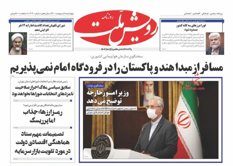 صفحه اول روزنامههای چهارشنبه ۸ اردیبهشت ۱۴۰۰