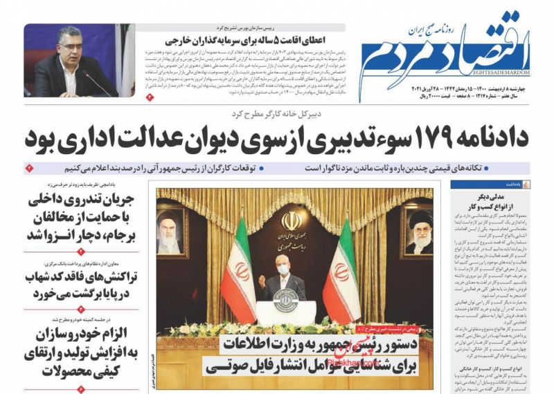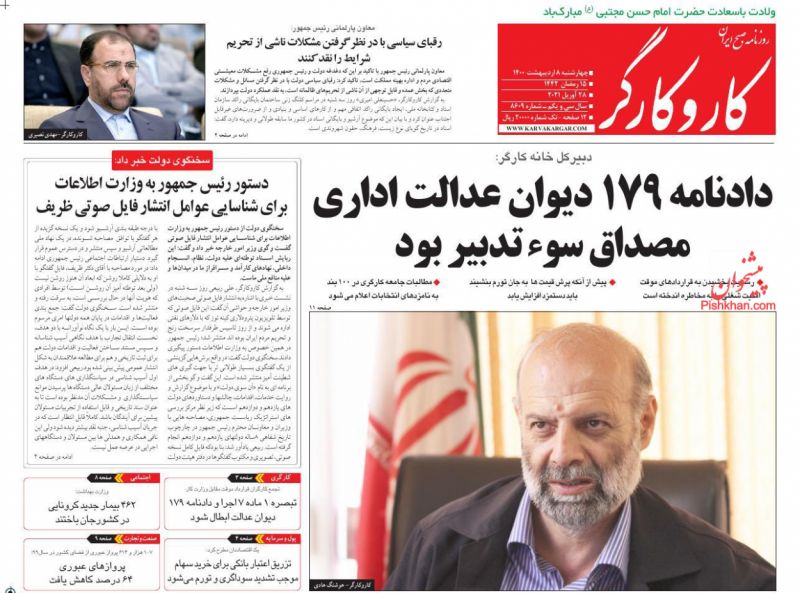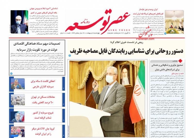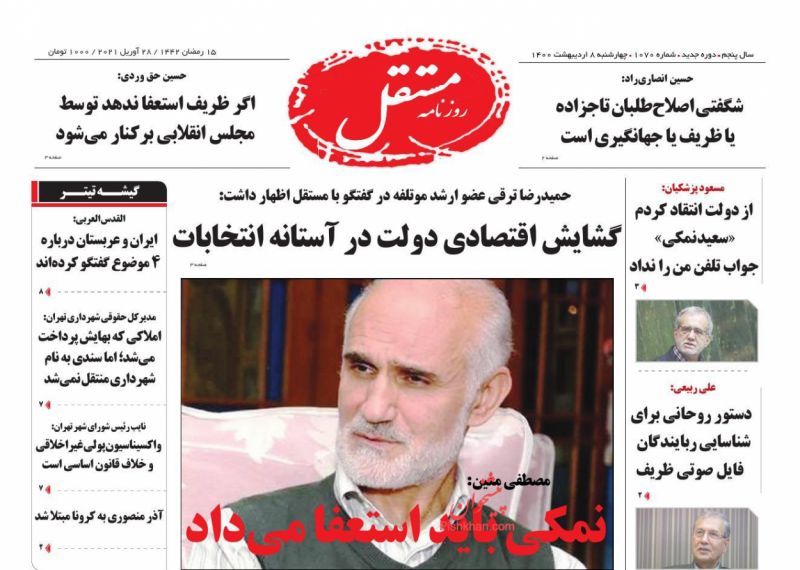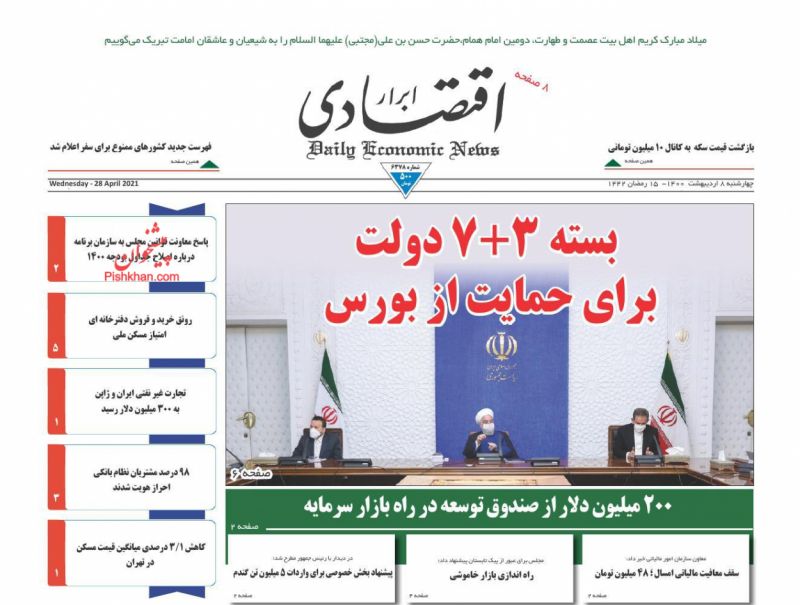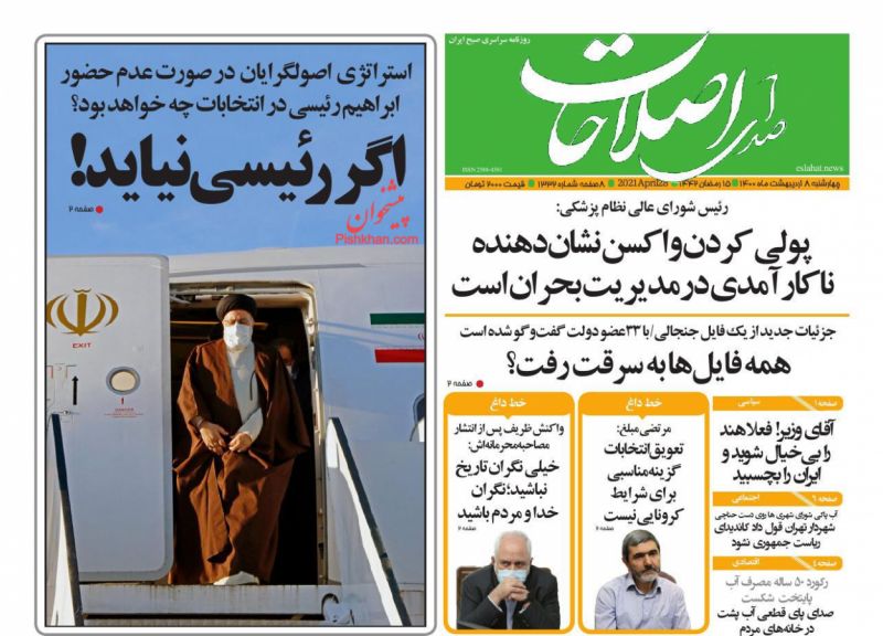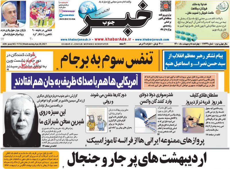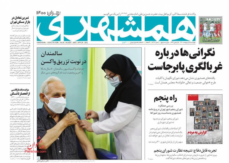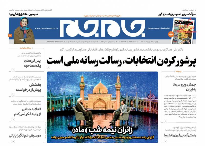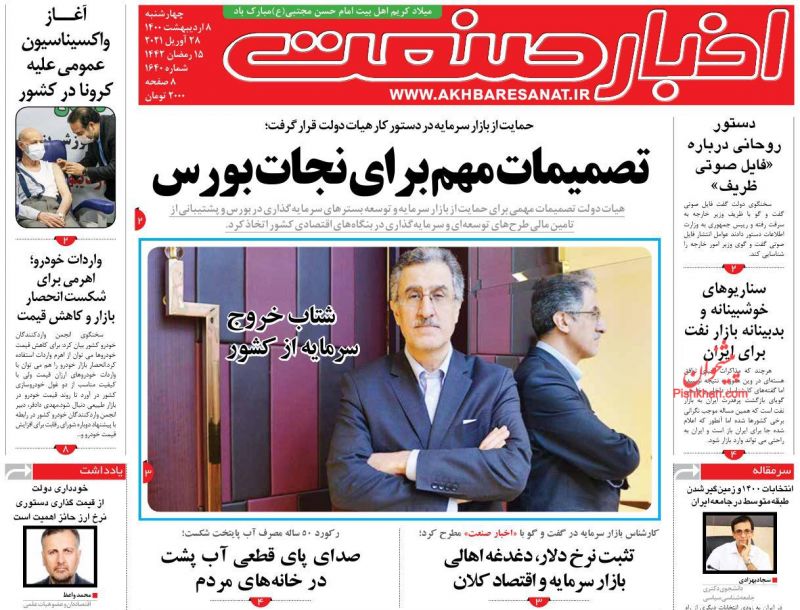 صفحه اول روزنامههای چهارشنبه ۸ اردیبهشت ۱۴۰۰