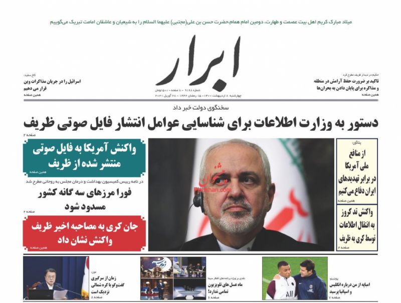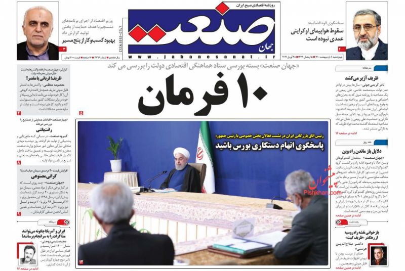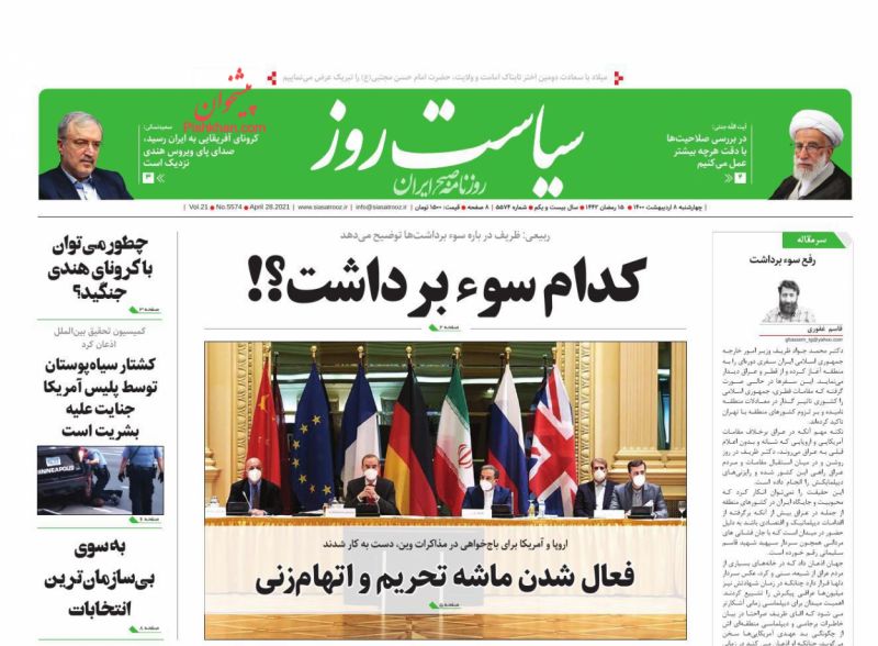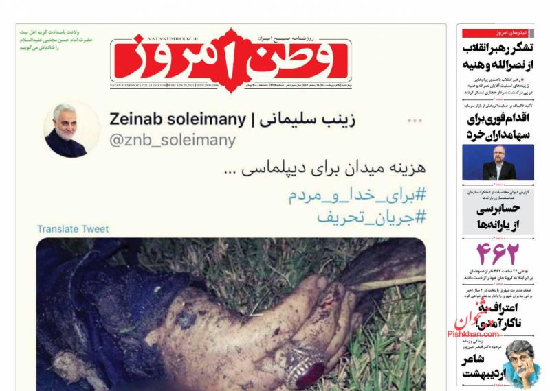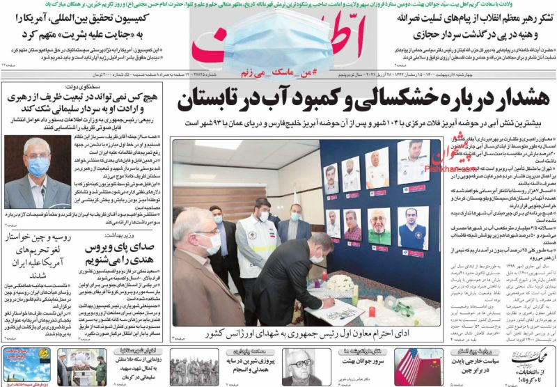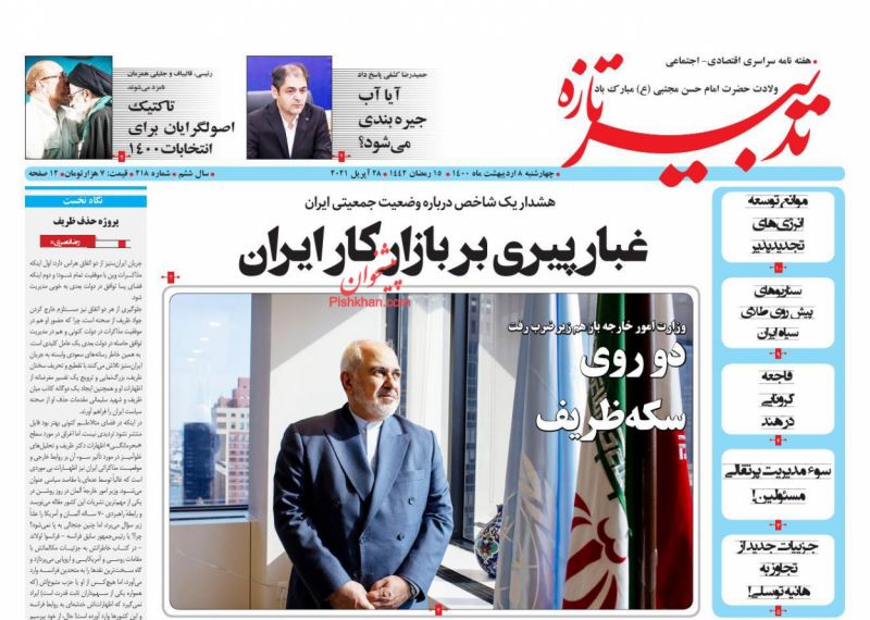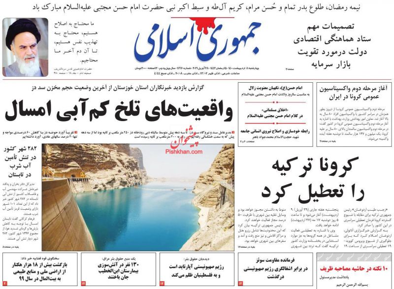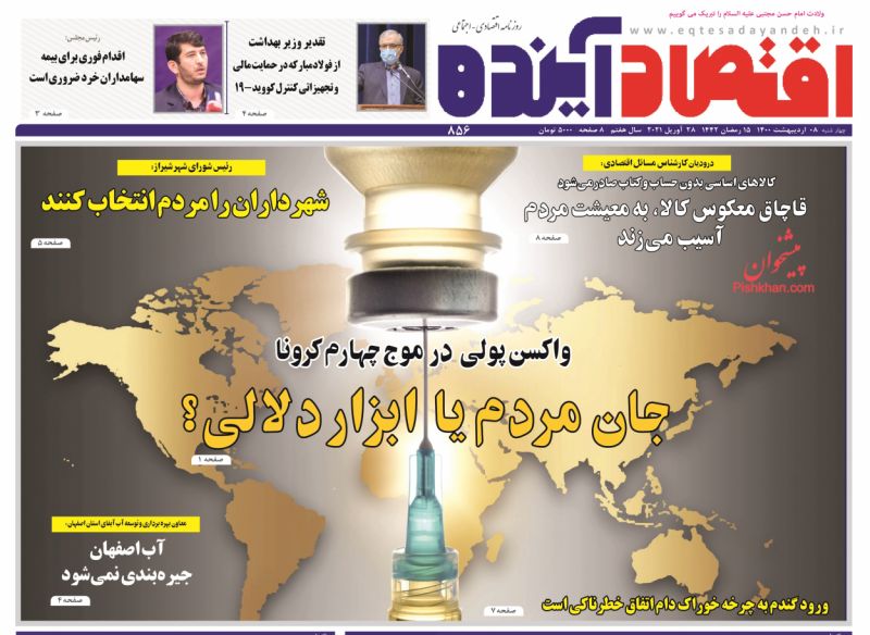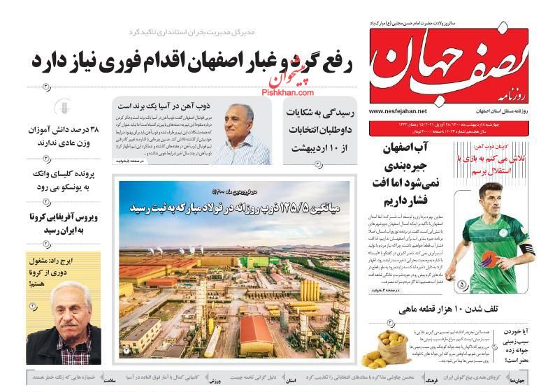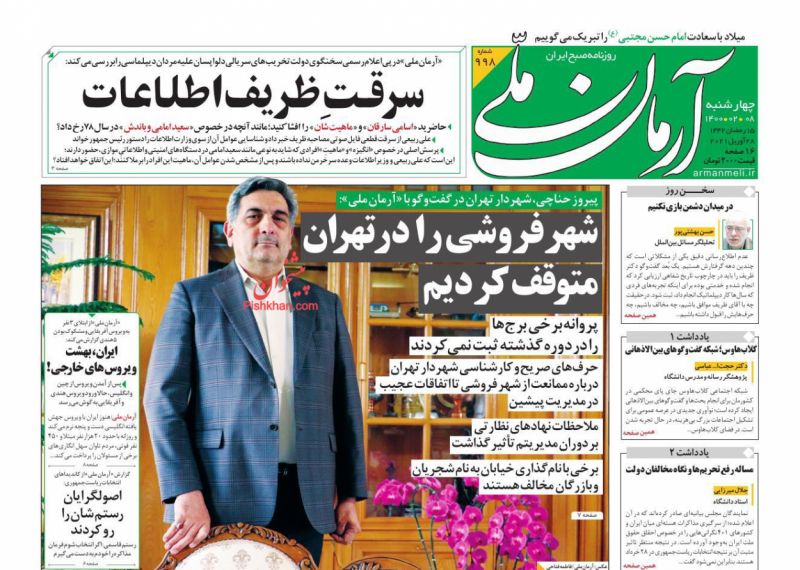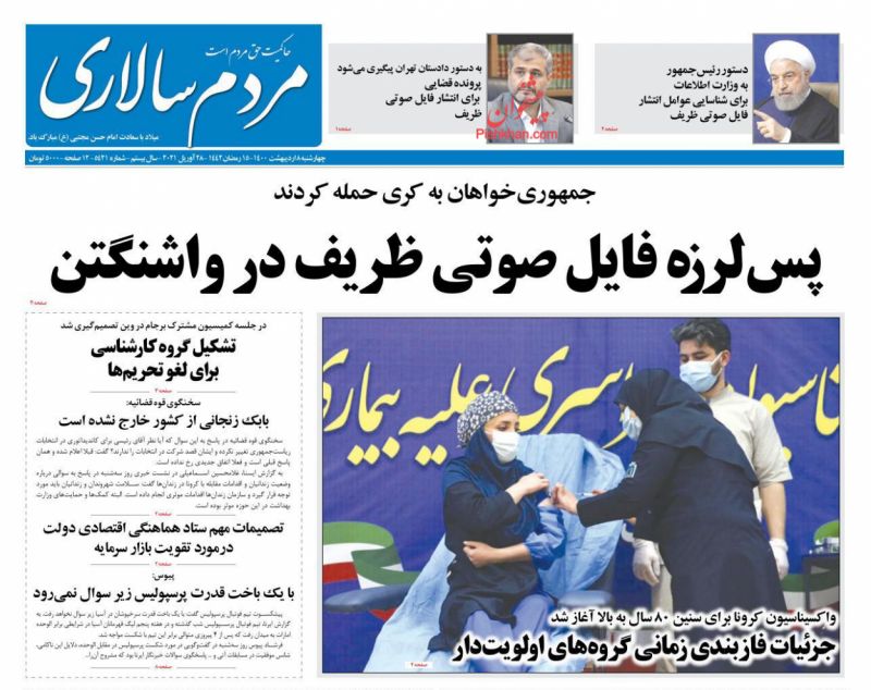 صفحه اول روزنامههای چهارشنبه ۸ اردیبهشت ۱۴۰۰