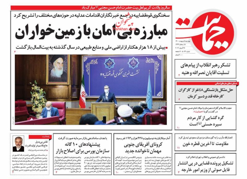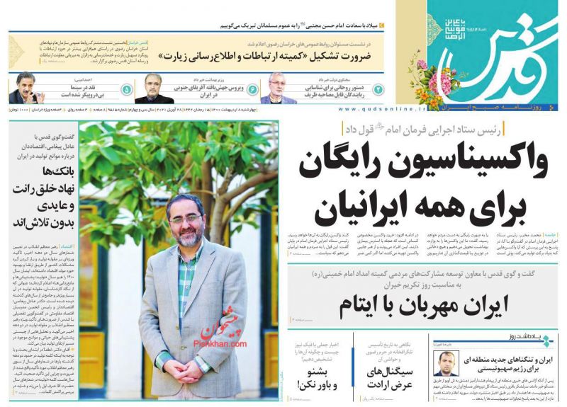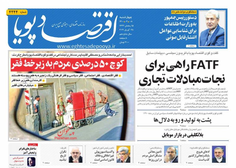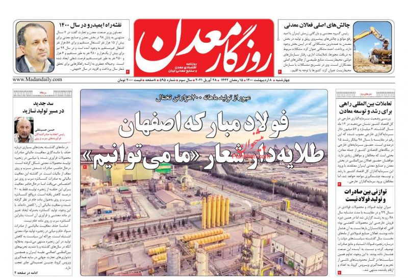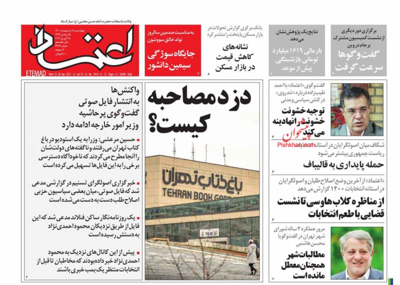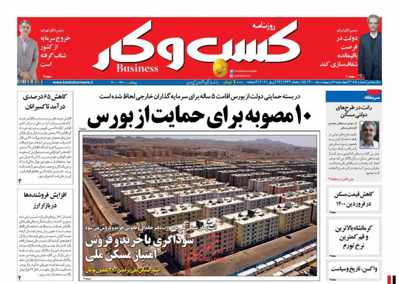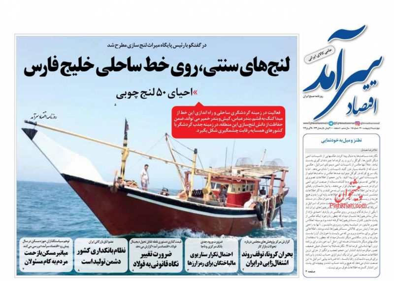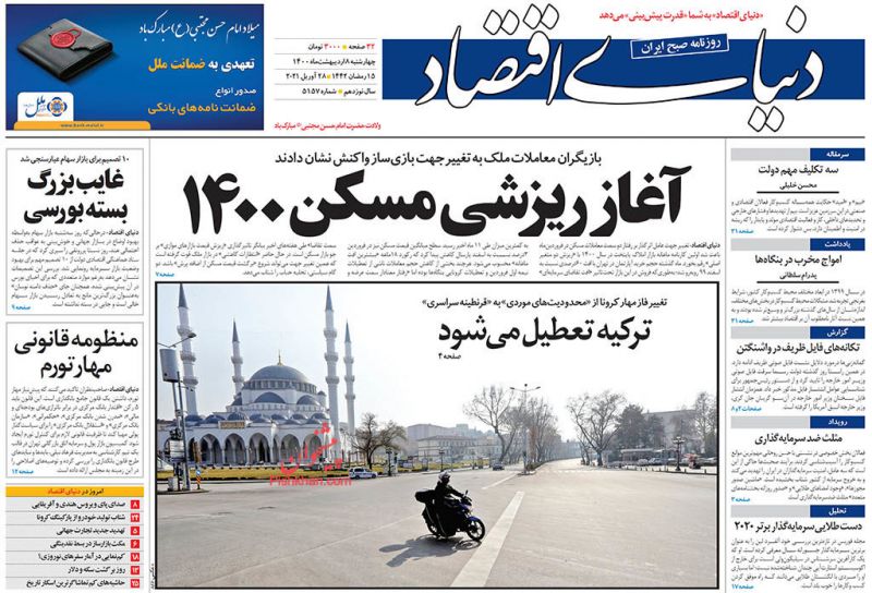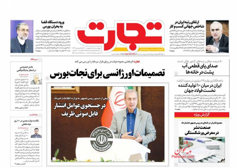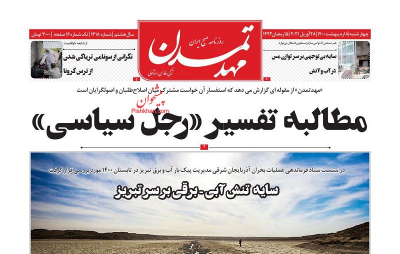 صفحه اول روزنامههای چهارشنبه ۸ اردیبهشت ۱۴۰۰