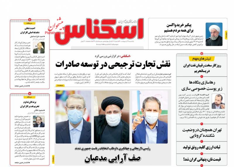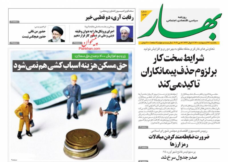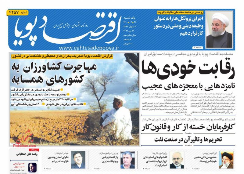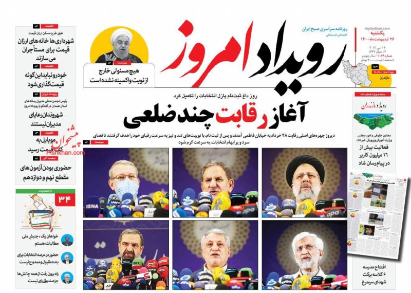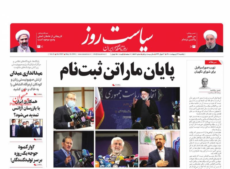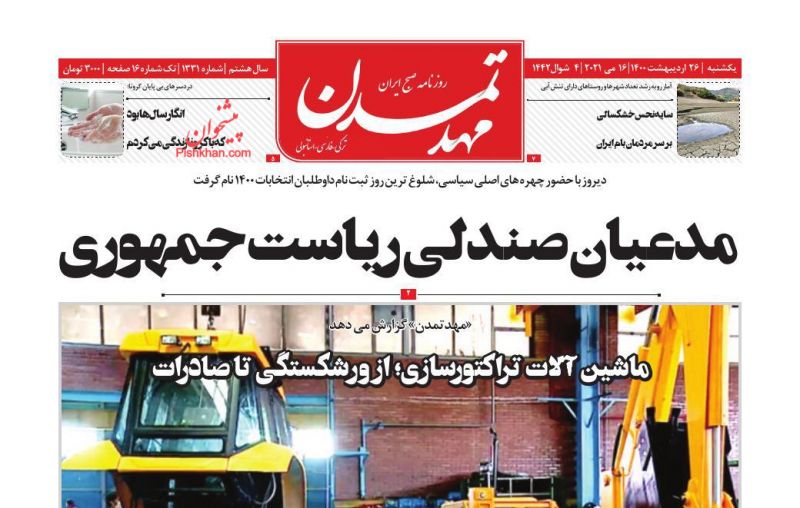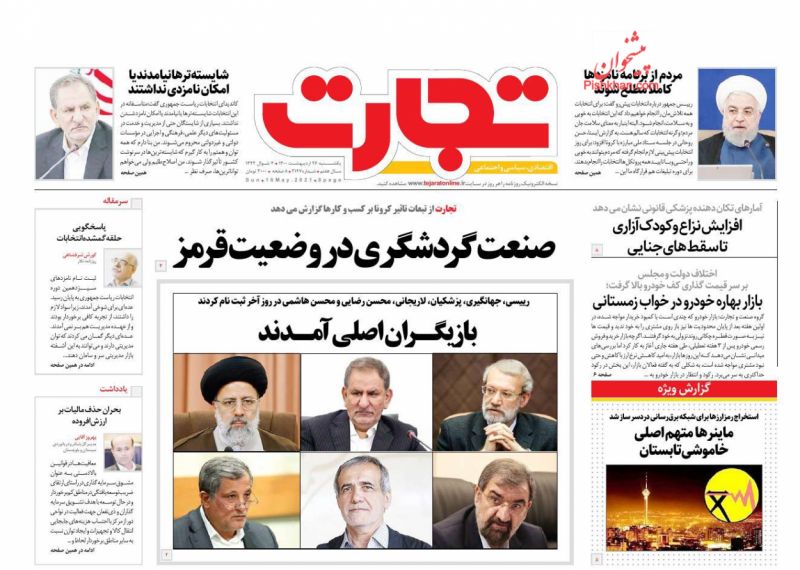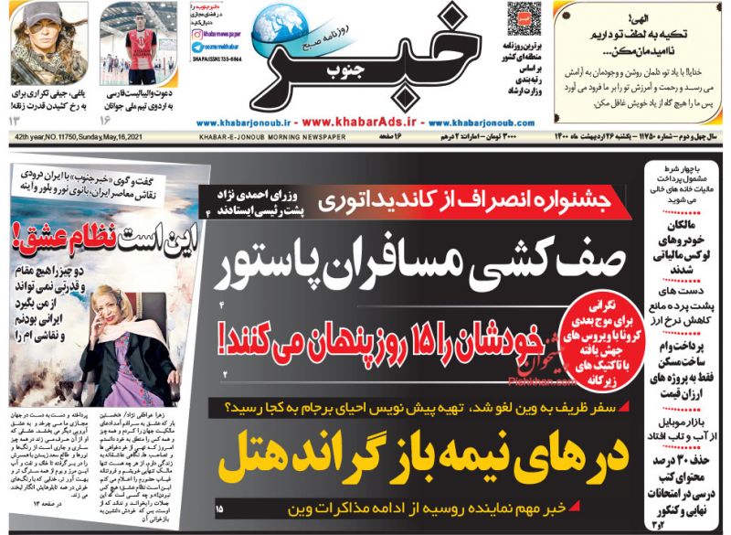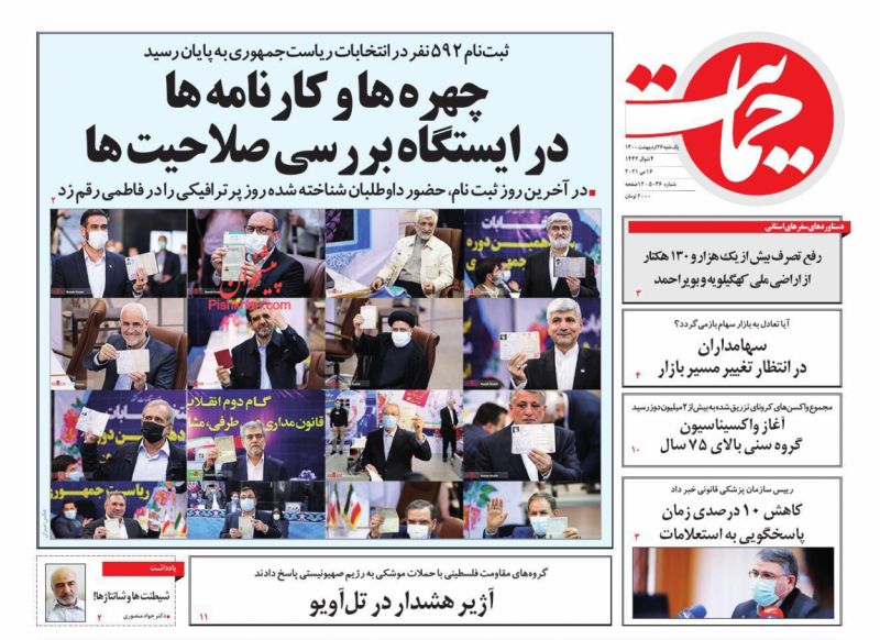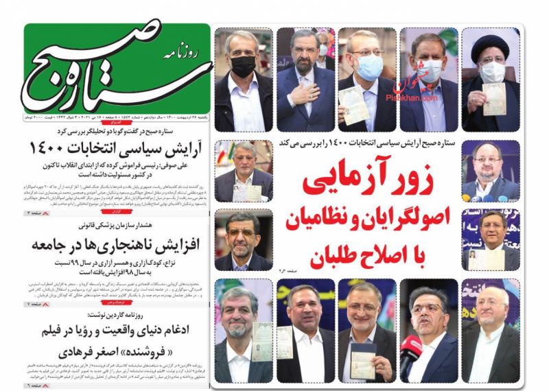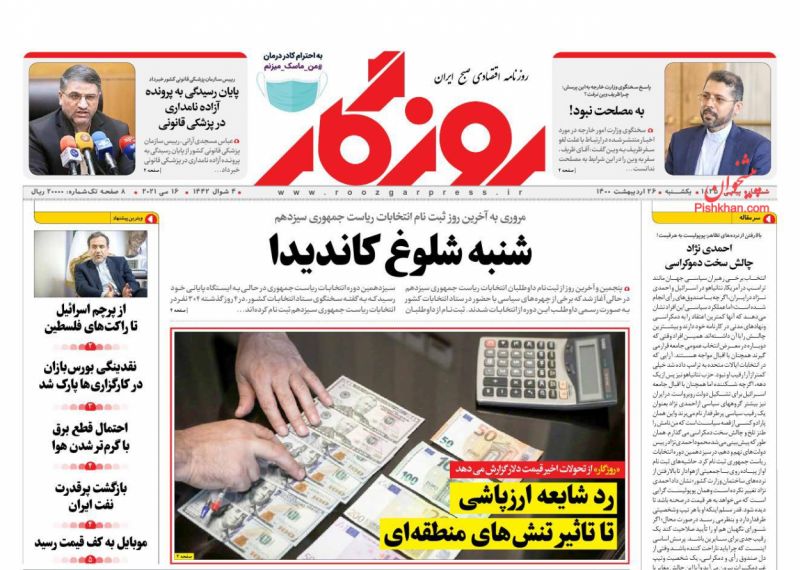 صفحه اول روزنامههای یکشنبه ۲۶ اردیبهشت ۱۴۰۰