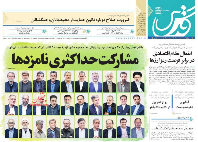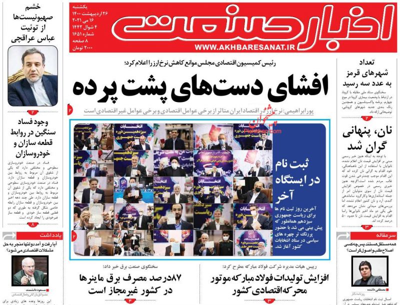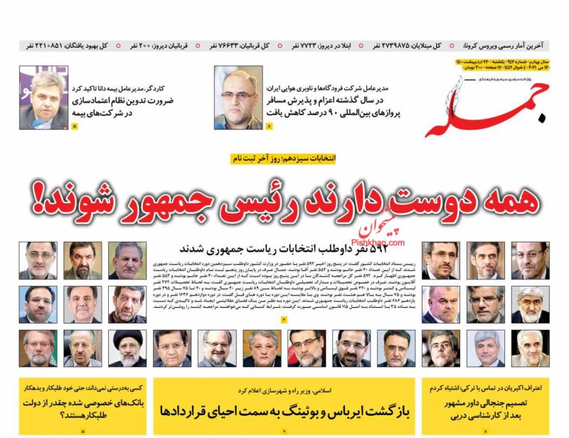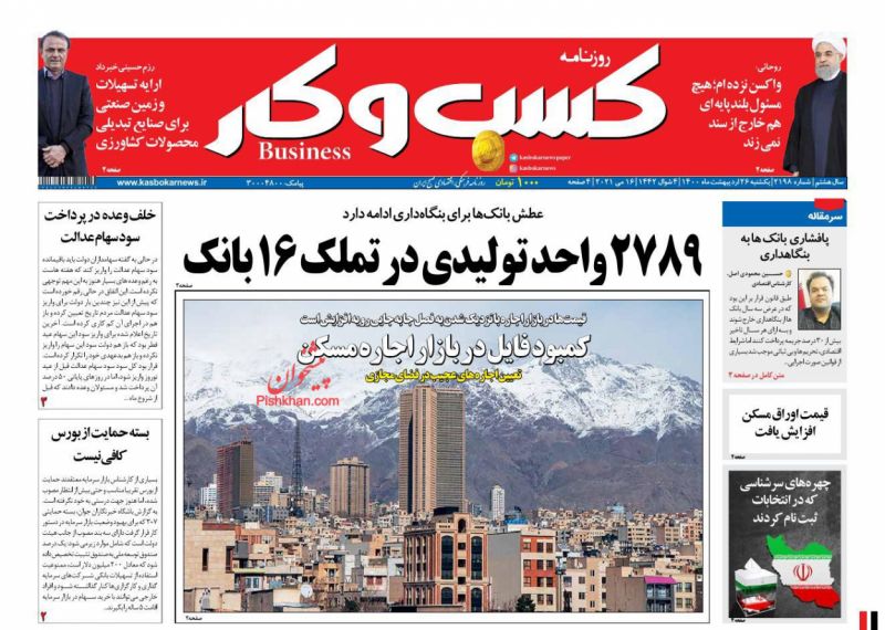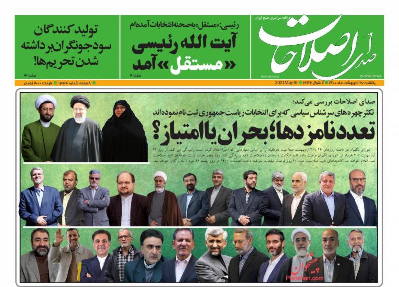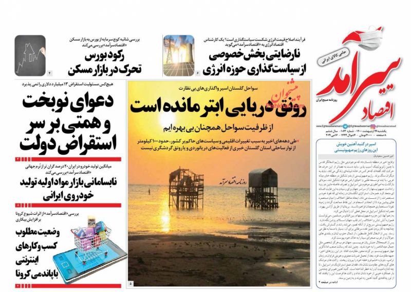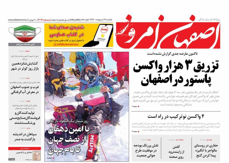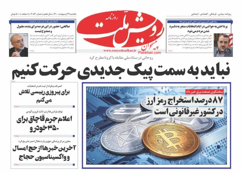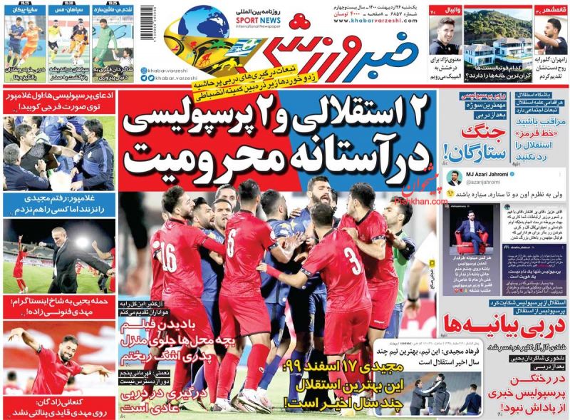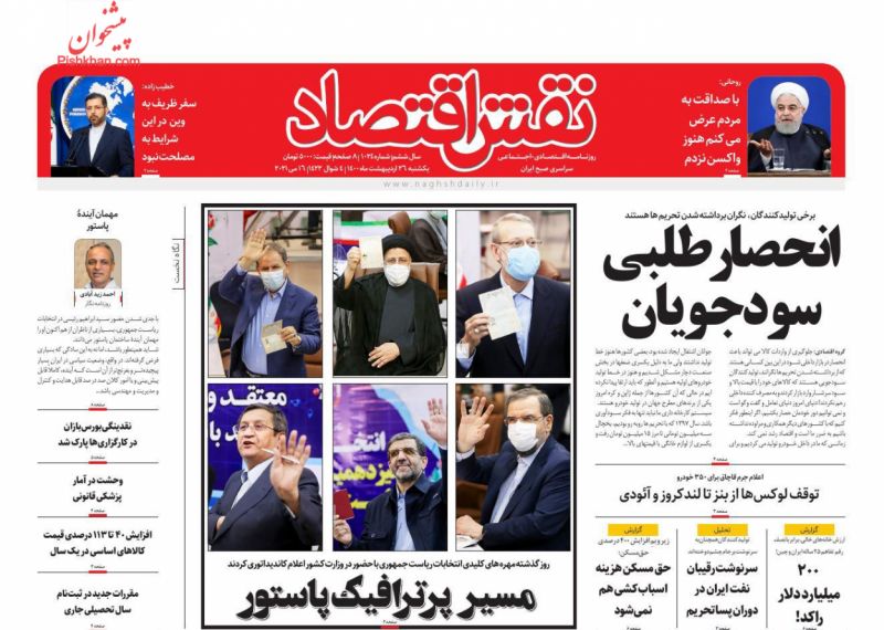 صفحه اول روزنامههای یکشنبه ۲۶ اردیبهشت ۱۴۰۰