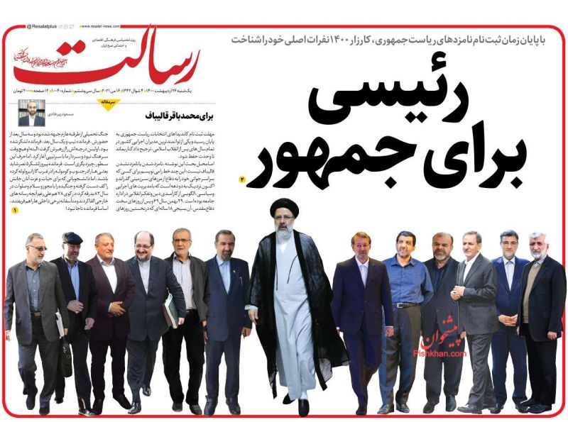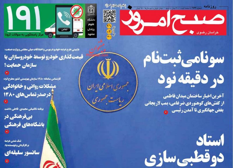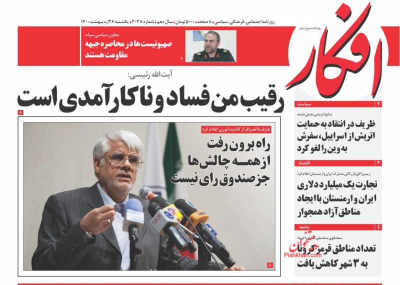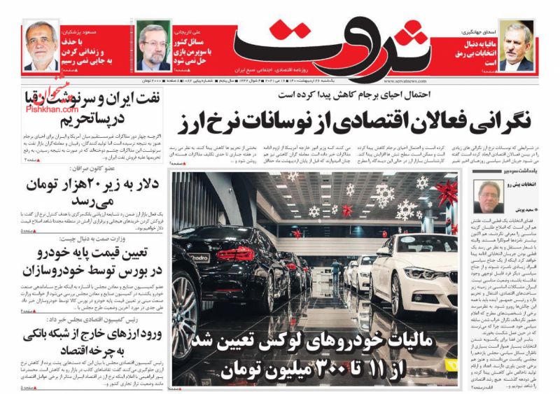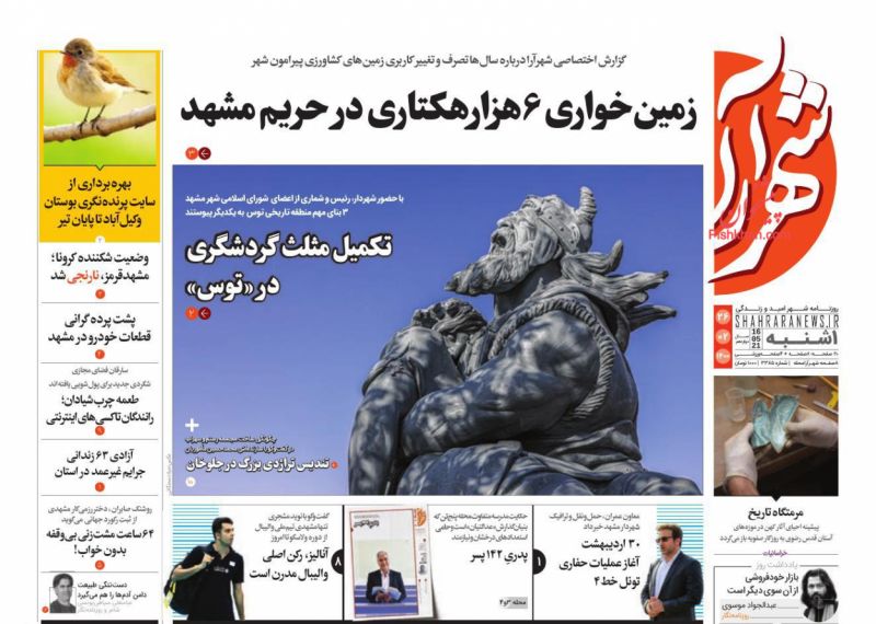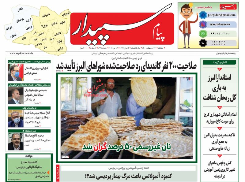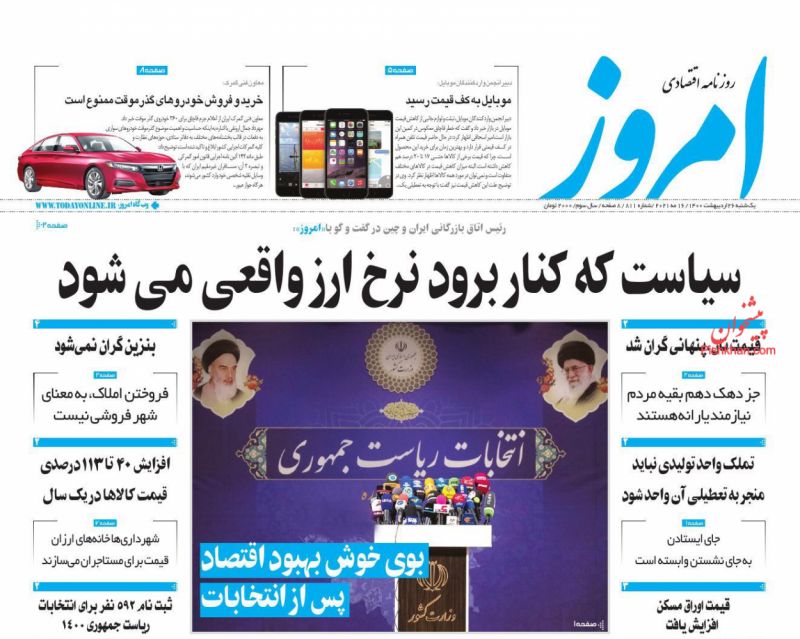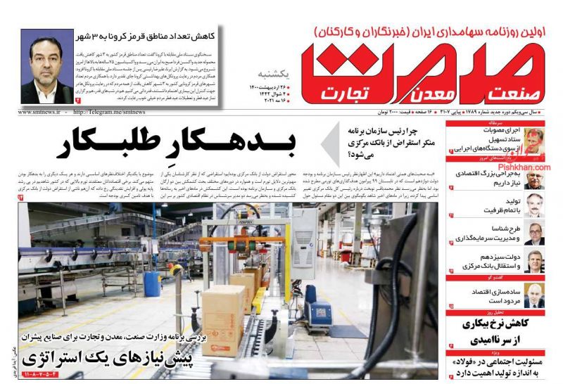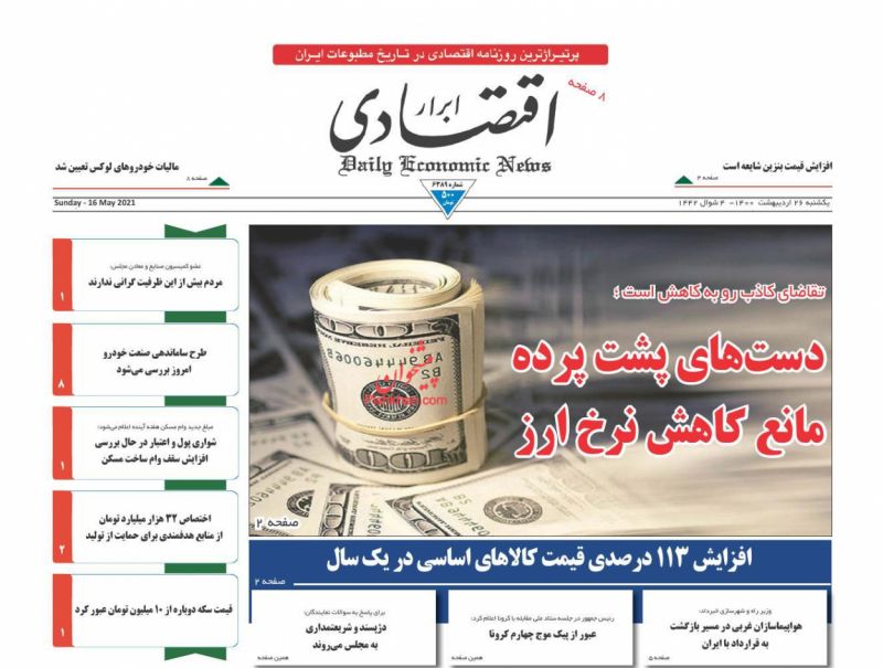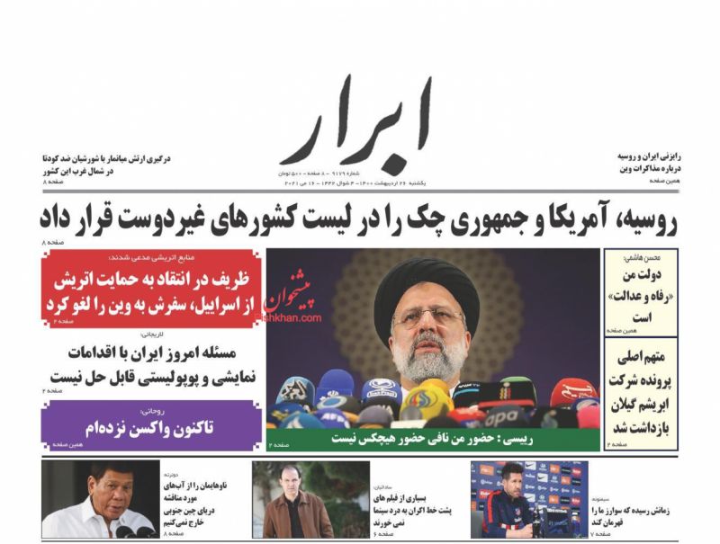 صفحه اول روزنامههای یکشنبه ۲۶ اردیبهشت ۱۴۰۰